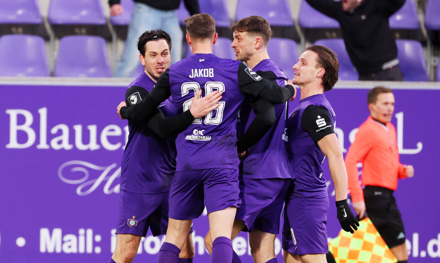 Der FC Erzgebirge Aue hat sich wieder den Aufstiegsplätzen in der dritten Fußball-Liga angenähert. Drei Tage nach der unglücklichen 0:1-Niederlage beim SV Sandhausen gelang der Mannschaft von Trainer Pavel Dotchev zum Ende der englischen Woche ein umkämpfter 2:0 (1:0)-Erfolg über den VfB Lübeck.