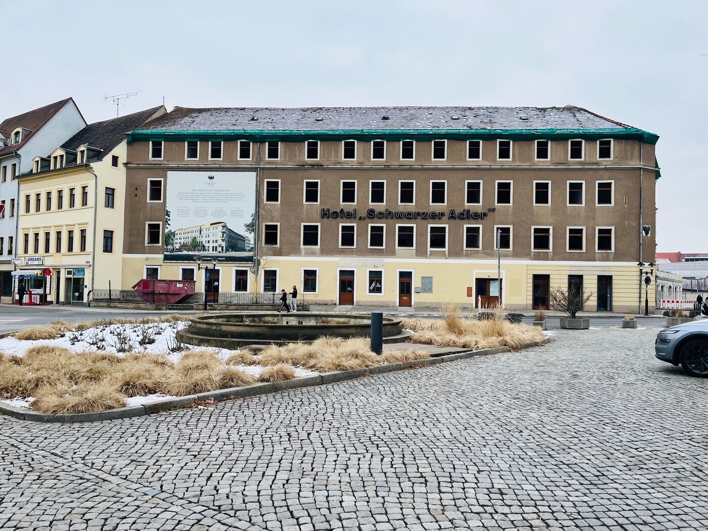 „Nun wird das Traditionshaus nach langem Leerstand aus dem Dornröschenschlaf geholt - mit einem großen Mehrwert für Pirnas Altstadt, die Bevölkerung und Reisende von Nah und Fern“, macht das Bauschild Appetit auf das neue Hotel. Es soll in drei Jahr Jahren mit 97 Zimmern (200 Betten) und einer Sky-Bar mit Blick zur Festung Sonnenstein wieder öffnen, der Ballsaal soll in alter Blüte wieder aufleben. Der Denkmalschutz achtet dabei auf die behutsame Sanierung.