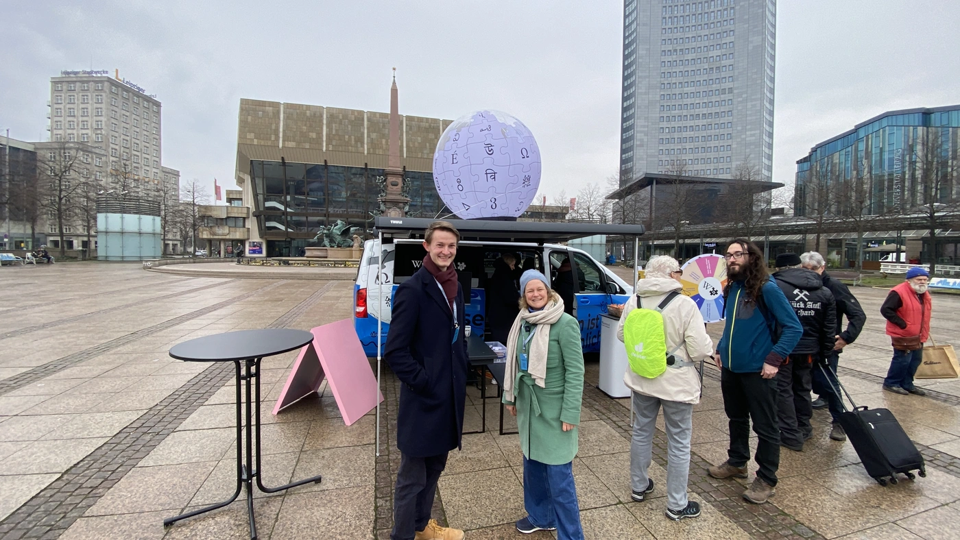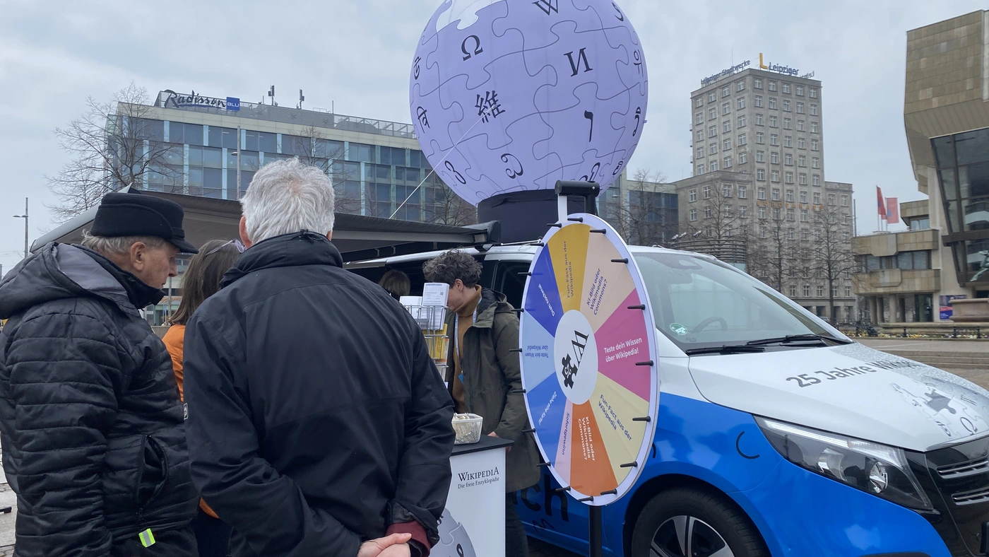 Anlässlich des 25. Geburtstags des Online-Nachschlagewerks Wikipedia hat der Tourauftakt der deutschlandweiten Bustour in Leipzig stattgefunden. Bis 17 Uhr machte der Bus am Augustusplatz Station – und stieß dabei auf großes Interesse. Zahlreiche Leipziger nutzten die Gelegenheit, sich vor Ort über die freie Online-Enzyklopädie zu informieren. Der Andrang war durchgehend hoch.