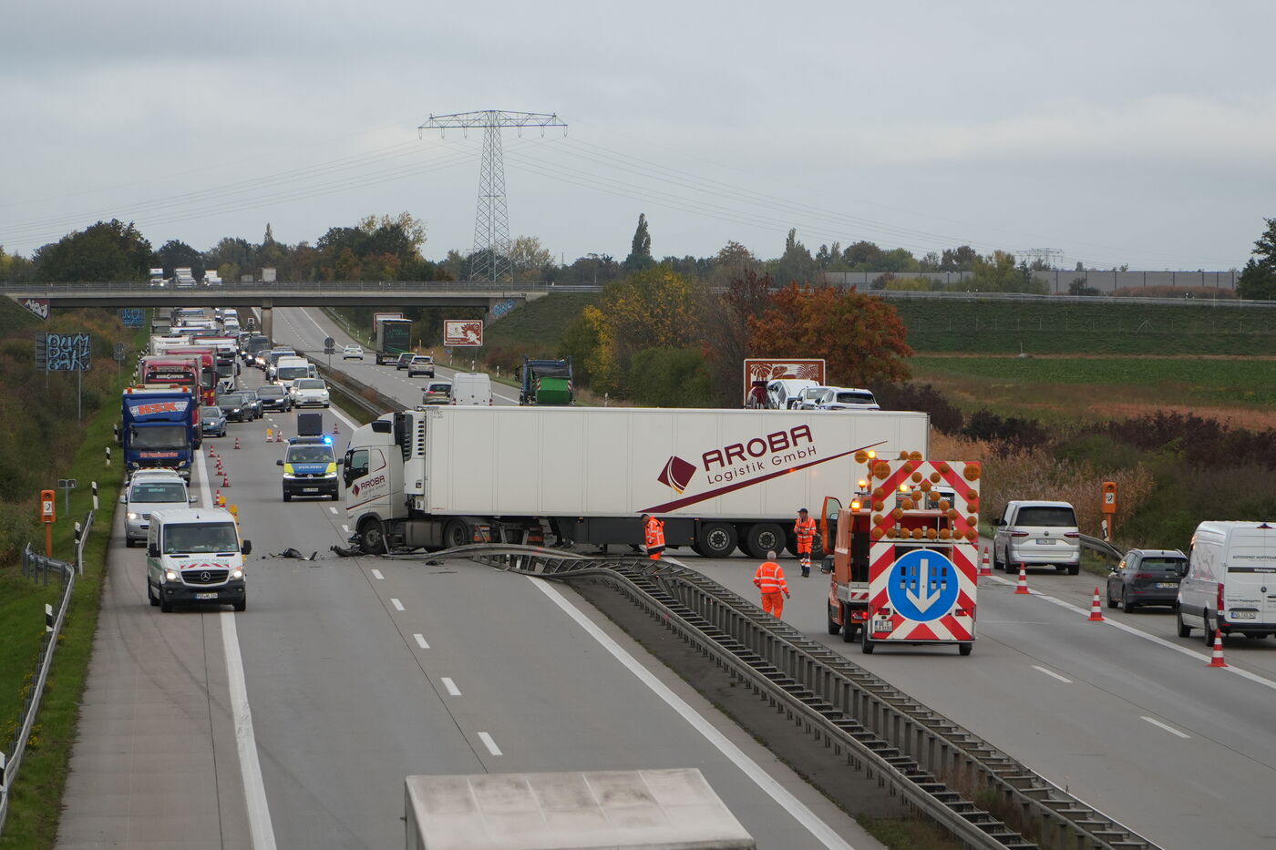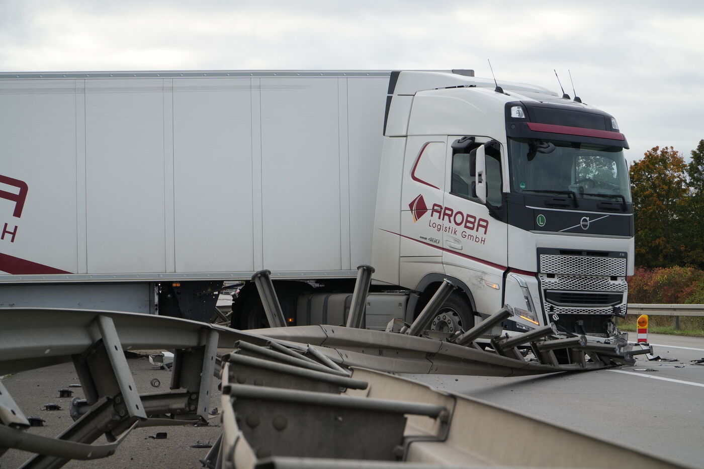 - Der Lkw wurde leicht, die Mittelleitplanke schwer beschädigt.