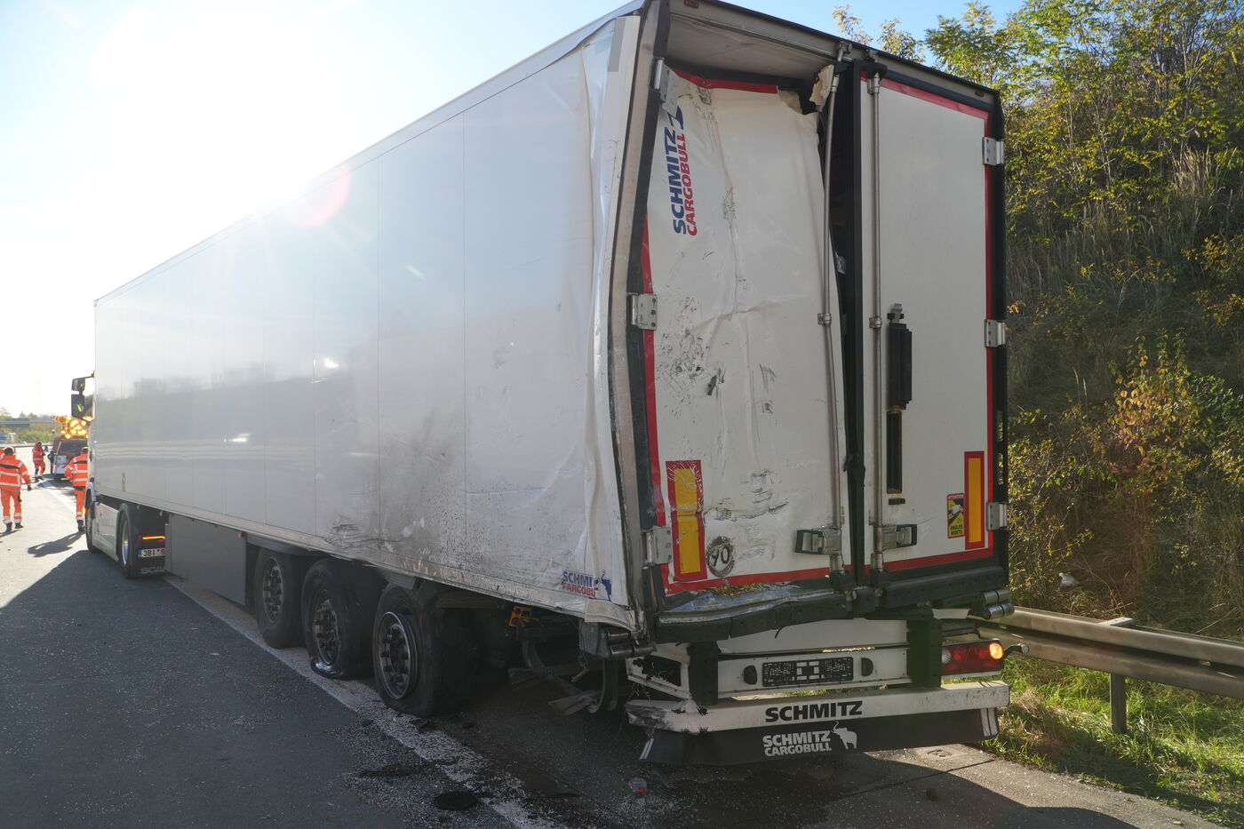 - Der beschädigte Satterlschlepper, in den der Laster krachte.