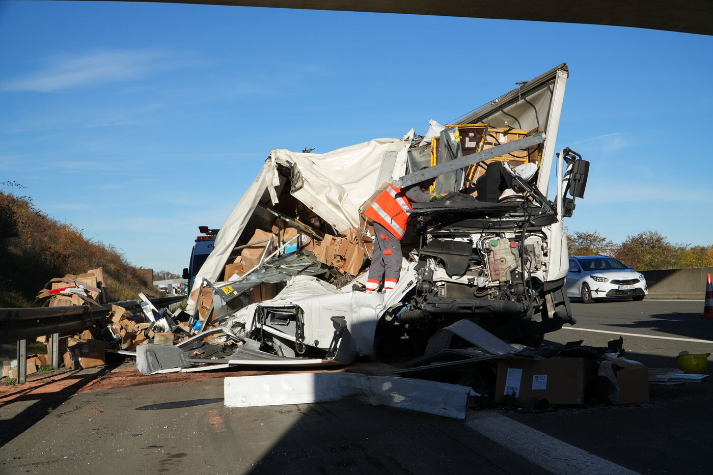 - Einer der beiden Lkw wurde völlig zerfetzt - dass der Trucker hier fast heil rauskam, grenzt ein Wunder.
