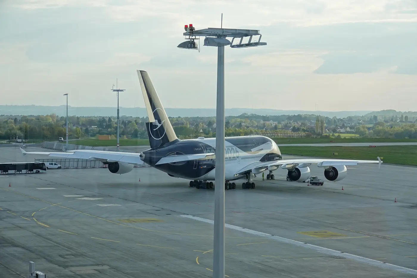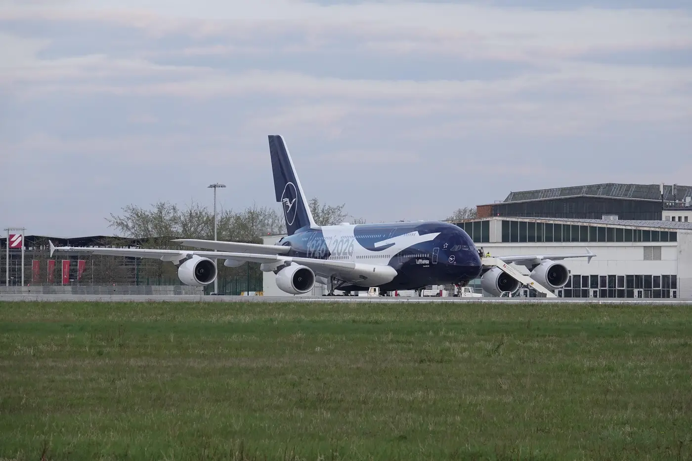 Der Airbus A380-841 mit Sonderlackierung zum 100-jährigen Lufthansa-Jubiläum ist wie geplant 18:15 Uhr in Dresden gelandet. Der Flug vom Drehkreuz München hat exakt 38 Minuten gedauert. Der Riesenvogel mit der Kennung „Mike-Hotel“, der sonst nach Bangkok, Delhi oder Los Angeles unterwegs ist, wird in den nächsten Wochen bei den EFW gewartet und bekommt neue Sitze für die Business-Class.