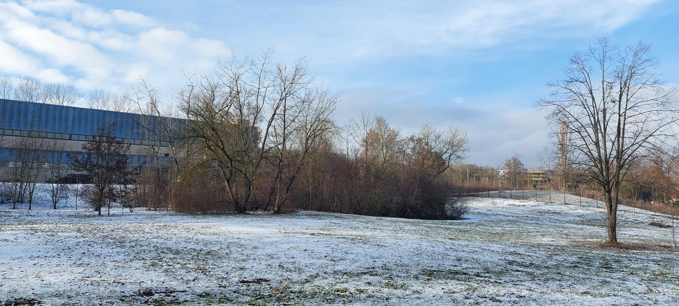 Ab Montag werden Bäume gefällt auf der künftigen Baustelle der neuen Ballsporthalle in Zwickau-Neuplanitz, obwohl noch nicht feststeht, wer baut.