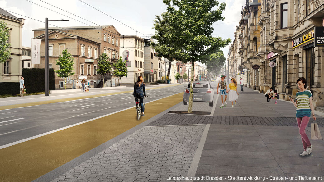 - Radwege, moderne Gehwege und Co: So soll die Königsbrücker Straße mal aussehen.