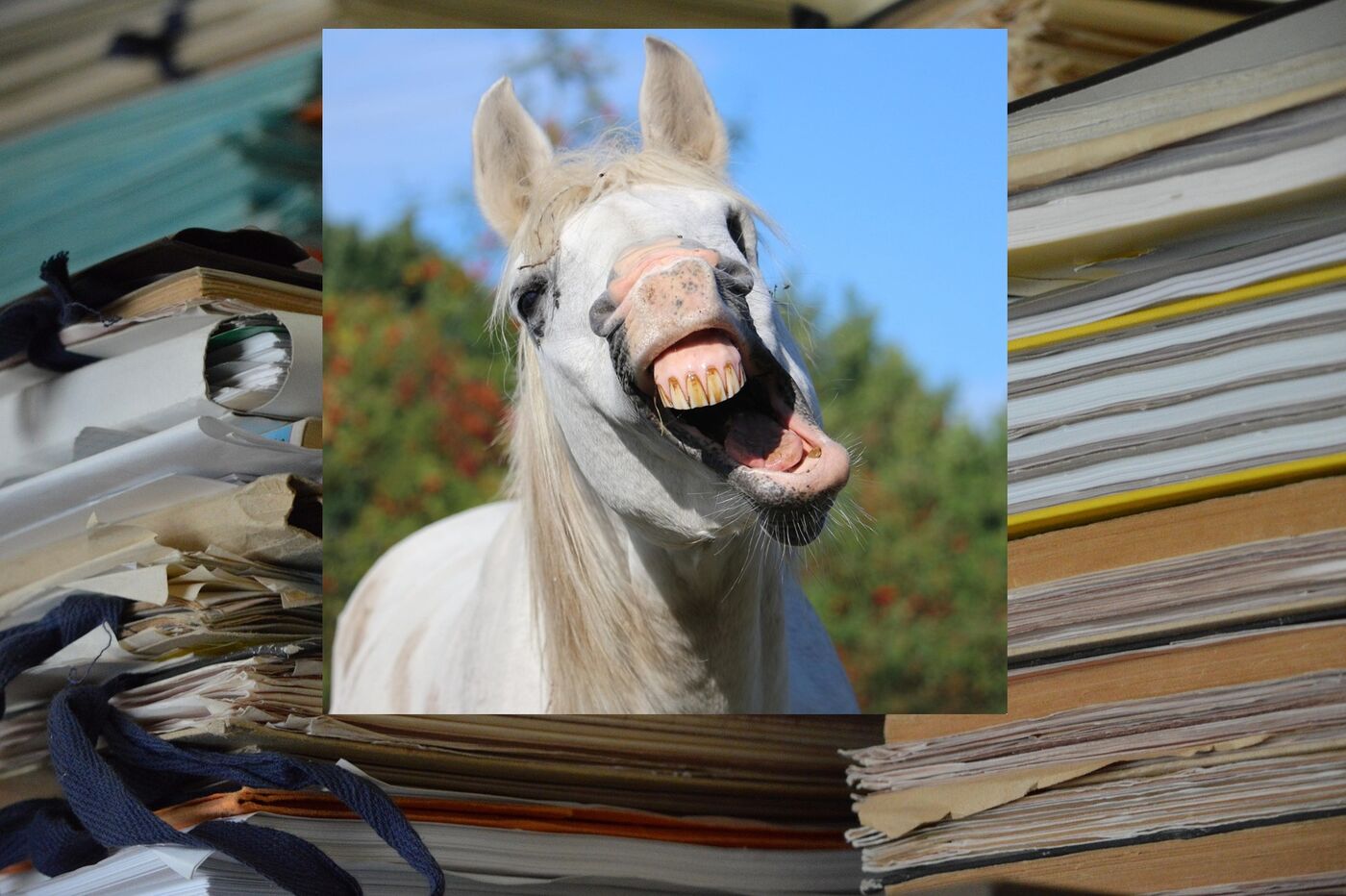 Dokumentationswust und Berichtspflichten, Verordnungen und Vorschriften. Die Bürokratie ist ein Monster. Unternehmen müssen z.B. Treppen- und Leiterbeauftragte benennen. Und der hier, der freut sich: Der Amtsschimmel.