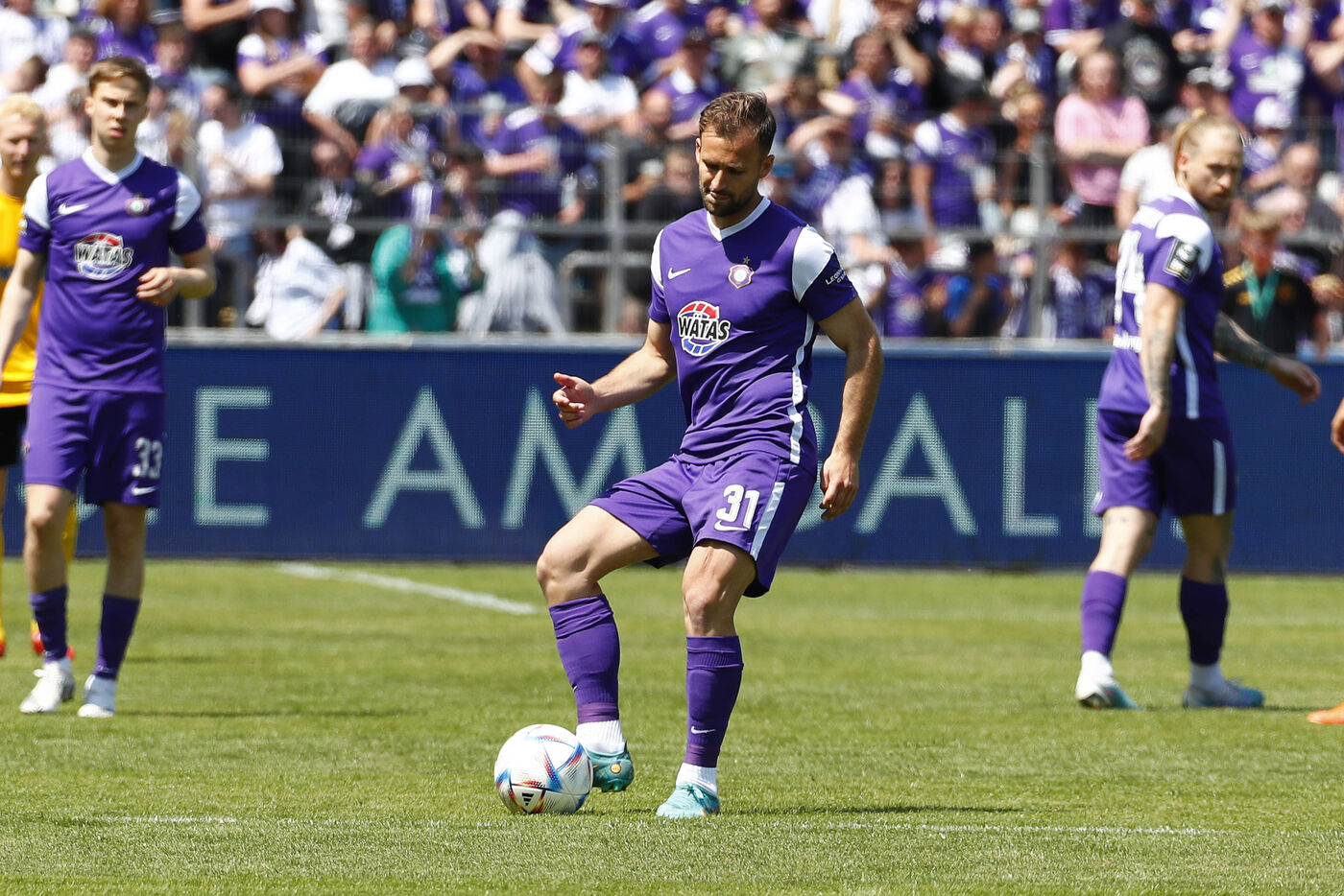Erzgebirge Aue hat die Saison in der 3. Fußball-Liga mit einem Unentschieden beendet. Die Veilchen kamen am Samstag bei Schlusslicht und Absteiger SpVgg Bayreuth zu einem späten 3:3 (1:0). Marvin Stefaniak hatte für Mannschaft von Trainer Pavel Dotchev am Samstag in der 39. Minute per Kopfballtor die verdiente Pausenführung erzielt. Nach dem Wechsel sorgt Christoph Fenninger (49./50.) mit einem Doppelschlag für die Wende. Eroll Zejnullahu (79.) erhöhte sogar noch für die Gastgeber. Aue kam aber dank Borys Tashchy (83./90.+3) noch einmal zurück und wendete die drohende Niederlage ab.