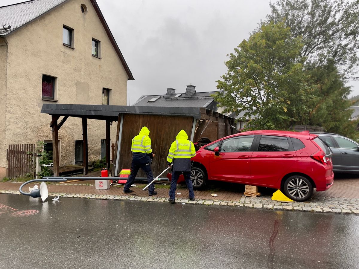 In Breitenbrunn hat sich am Sonntag ein Auto selbstständig gemacht. In dem Wagen saß noch eine Frau. Wie ein Reporter berichtete, hatte sie vor einem Gasthof auf ihren Mann gewartet. Der versuchte noch, den Wagen zu stoppen - ohne Erfolg. Das Auto fuhr 500 Meter die Hauptstraße entlang, stieß gegen eine Laterne und schließlich gegen einen Carport. Der Mann und die Frau wurden verletzt und kamen ins Krankenhaus.