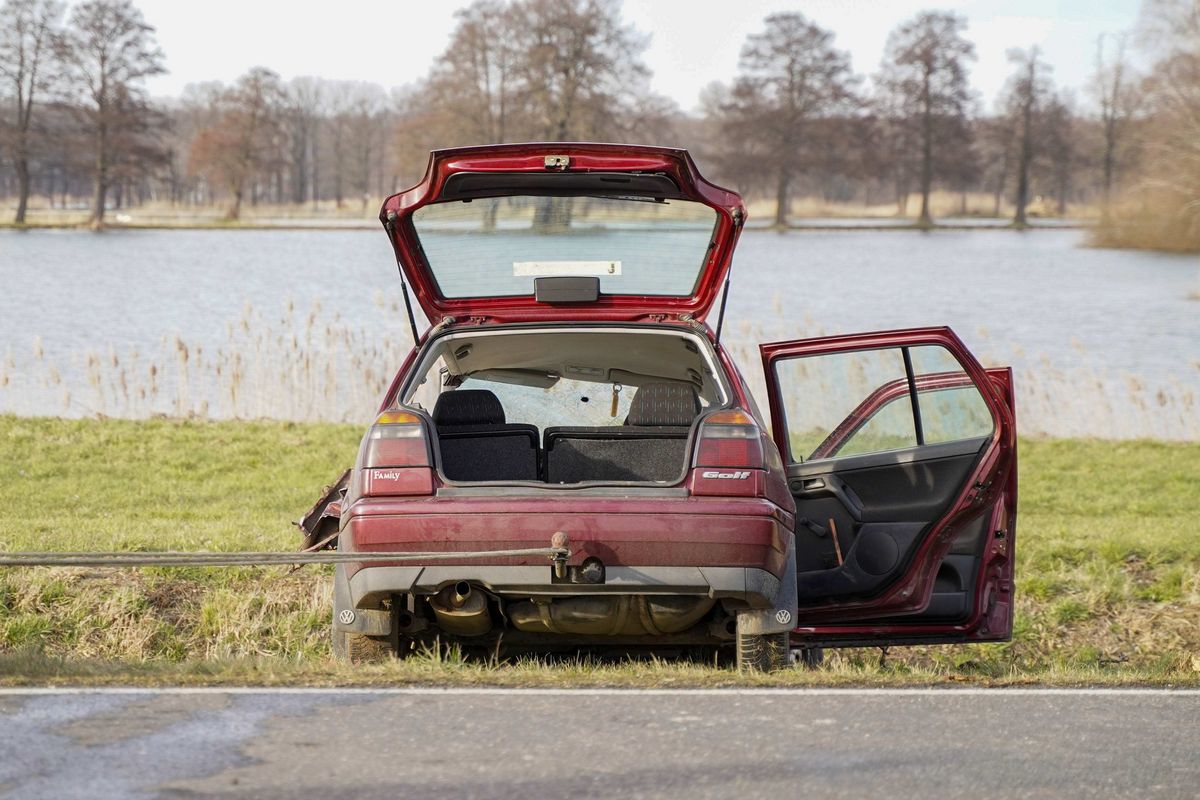 - Der völlig demolierte VW.