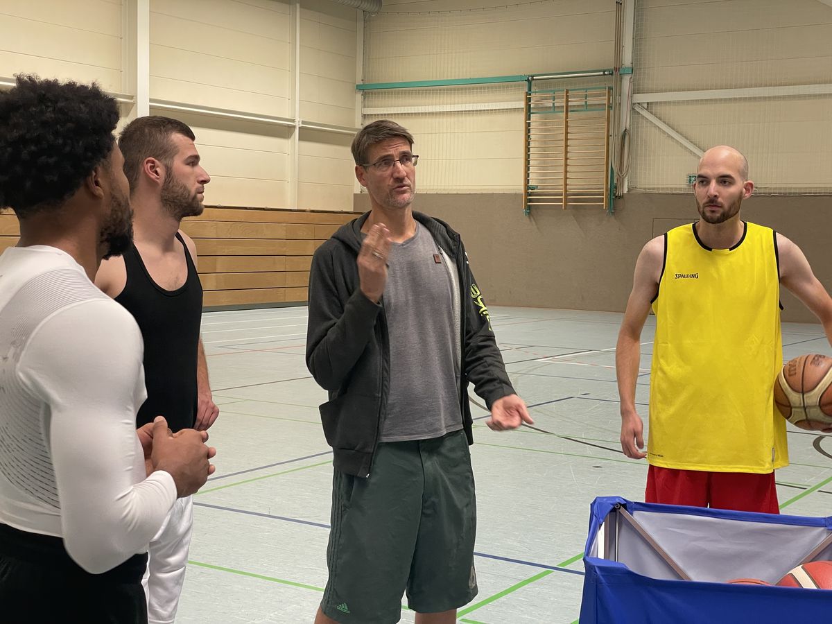 - Coach Stephan Wolf bespricht den Matchplan mit den Jungs.
