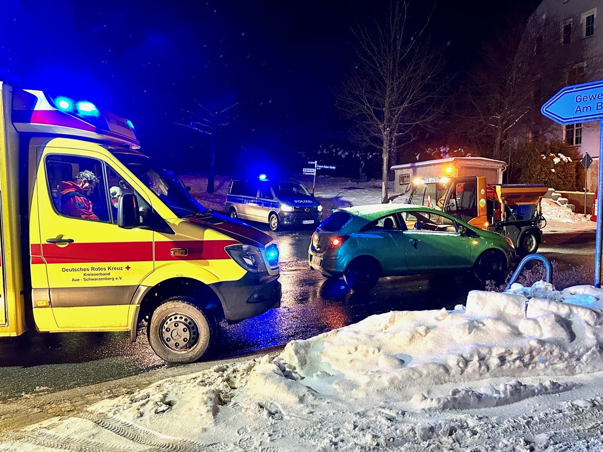 In Beierfeld ist am frühen Morgen eine Autofahrerin mit einem Winterdienstfahrzeug zusammengestoßen.