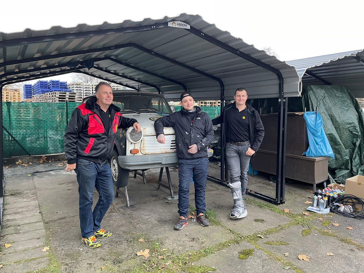 Neben dem 1.1er Kombi auf dem Dach hat WIN einen weiteren Trabi im Fuhrpark – für besondere Aufgaben. „Mein erstes Auto war ein Trabant, und da kommen immer Erinnerungen aus der Jugend auf“, erklärt Geschäftsführer Swen Schindler den Sonderstatus des Trabis.