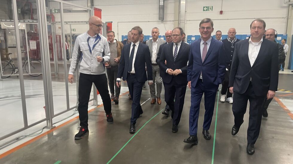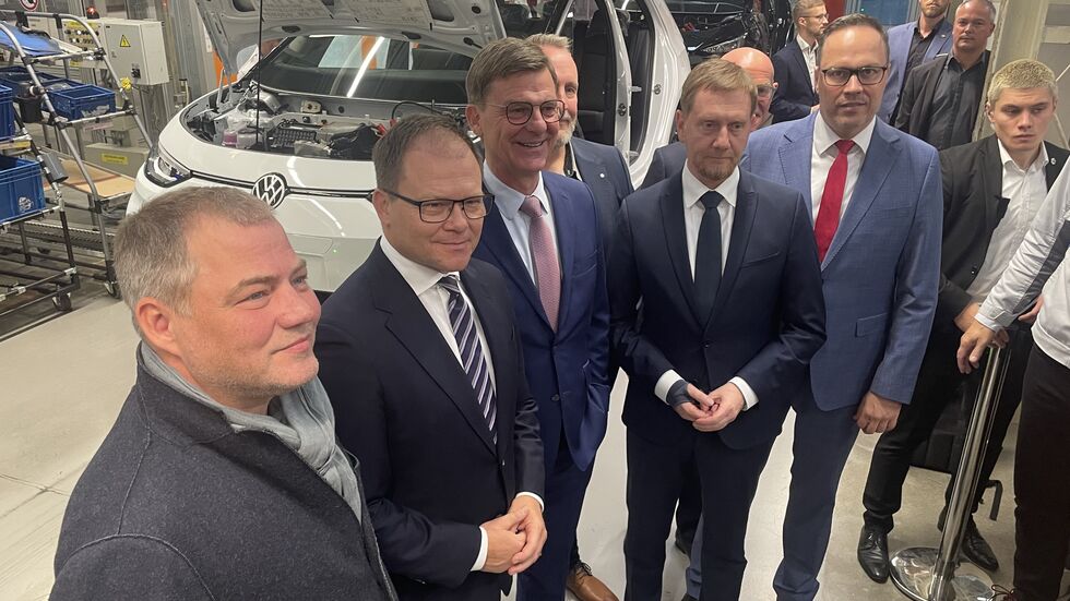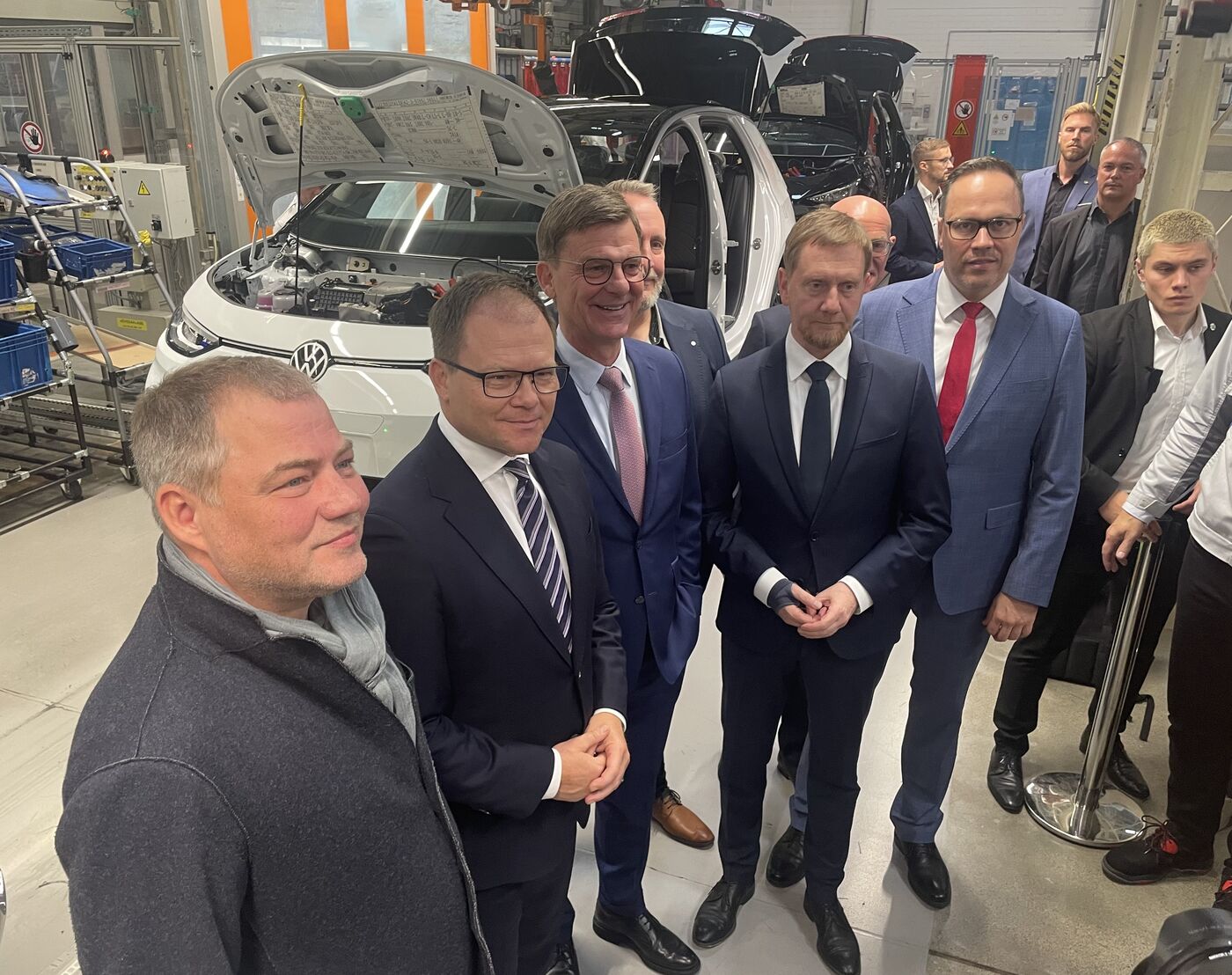 - Ministerpräsident Michael Kretschmer: Mosel hat eine Zukunft (links von ihm Umweltminister Carsten Schneider, rechts Thomas Edig, Personalchef VW Sachsen