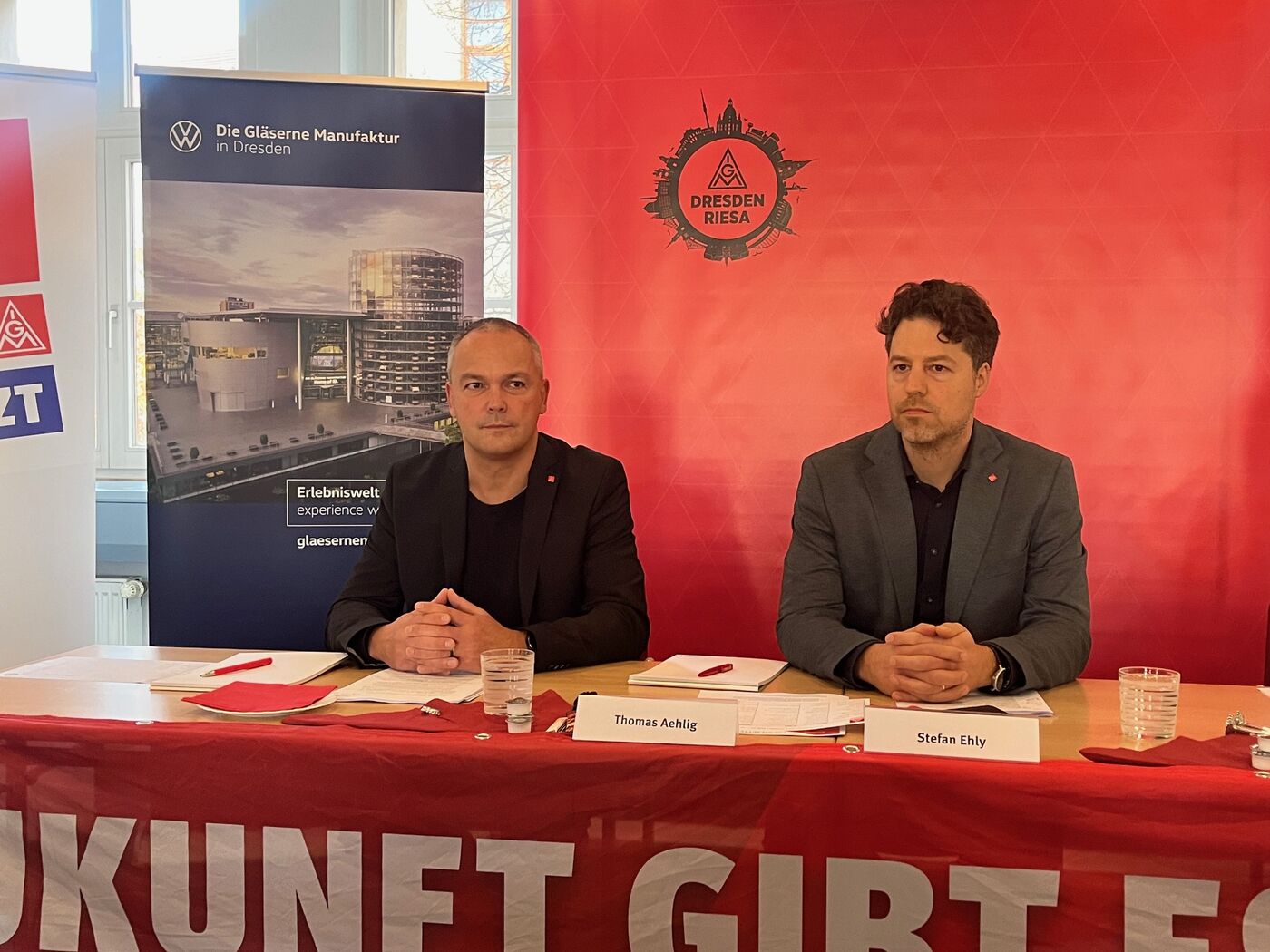 - Manufaktur-Betriebsratschef Thomas Aehlig (li.) und Stefan Ehly von der IG Metall stellen ihre Pläne für die Manufaktur vor