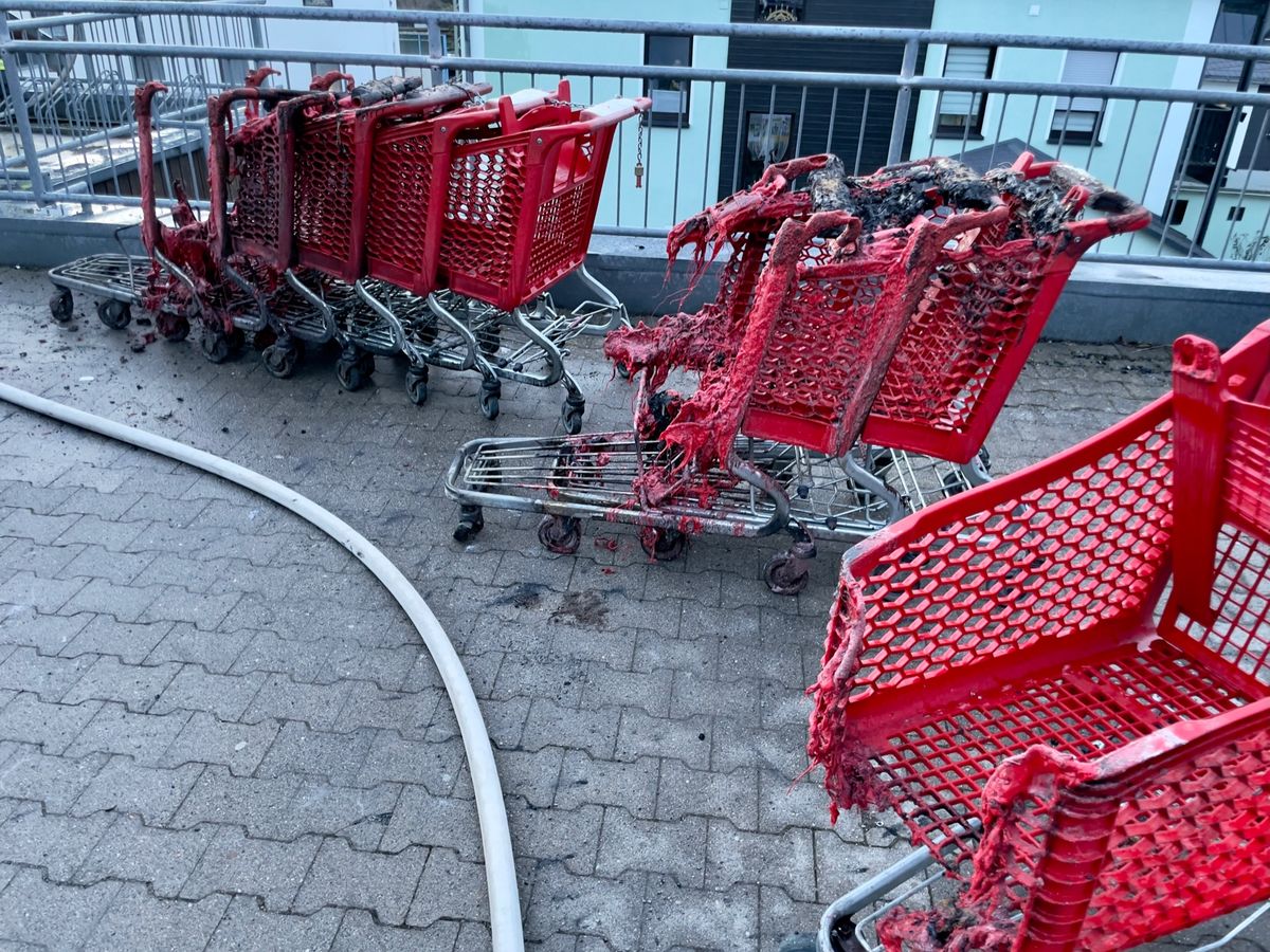 - Pyrotechnik entzündete gegen 16 Uhr Einkaufswagen.