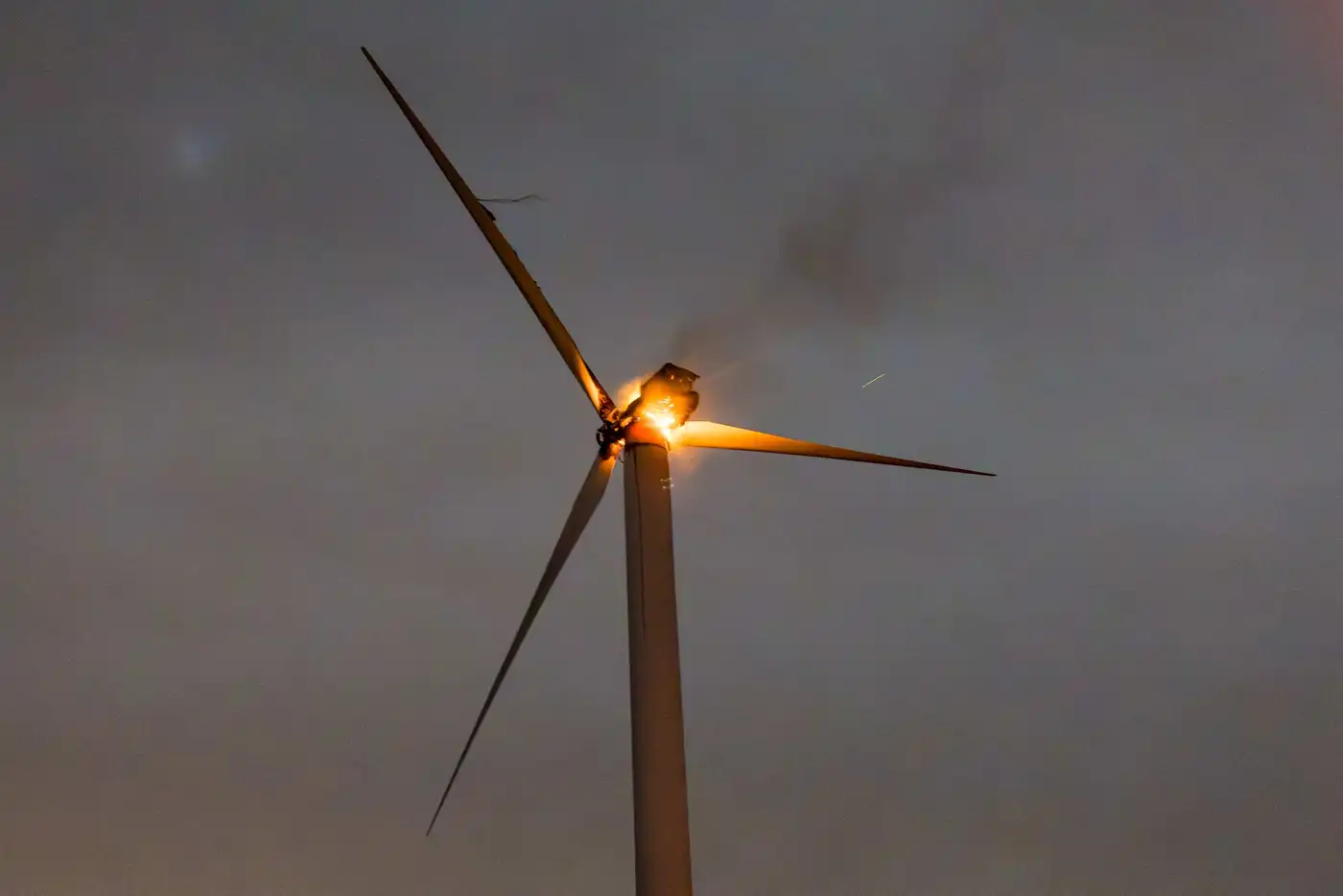 Die Gondel des Windrades stand in voller Ausdehnung in Flammen. Aufgrund der Höhe der Anlage und der intensiven Brandentwicklung war eine direkte Brandbekämpfung im oberen Bereich nicht möglich. Brennende Teile stürzten hinab und führten zu kleineren Bränden am Boden.