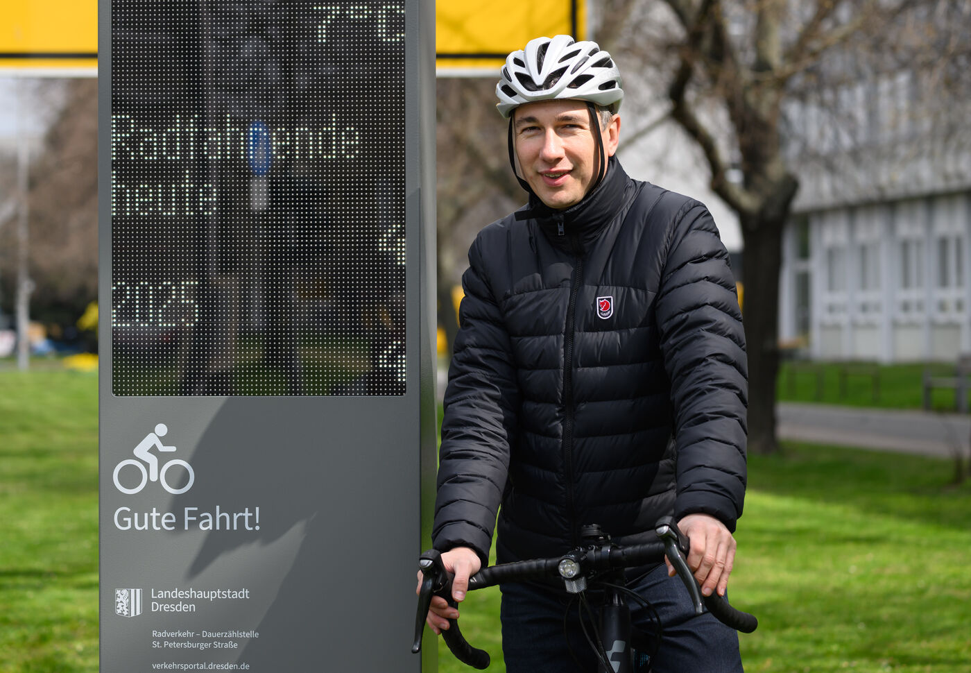 - Baubürgermeister Kühn weihte im April die ersten Fahrradbarometer an der St.-Petersburger-Straße ein, weitere sollen folgen