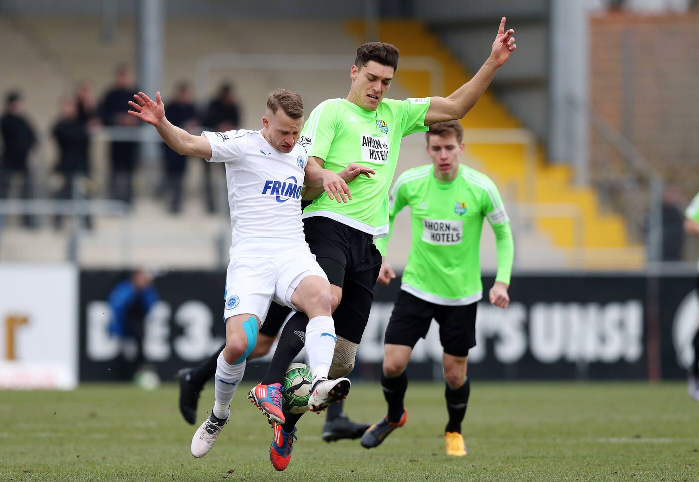 - Zweikampf zwischen Lottes Maximilian Oesterhelweg und CFC-Torschütze Myroslav Slavov (rechts) Quelle: imago/Picture point