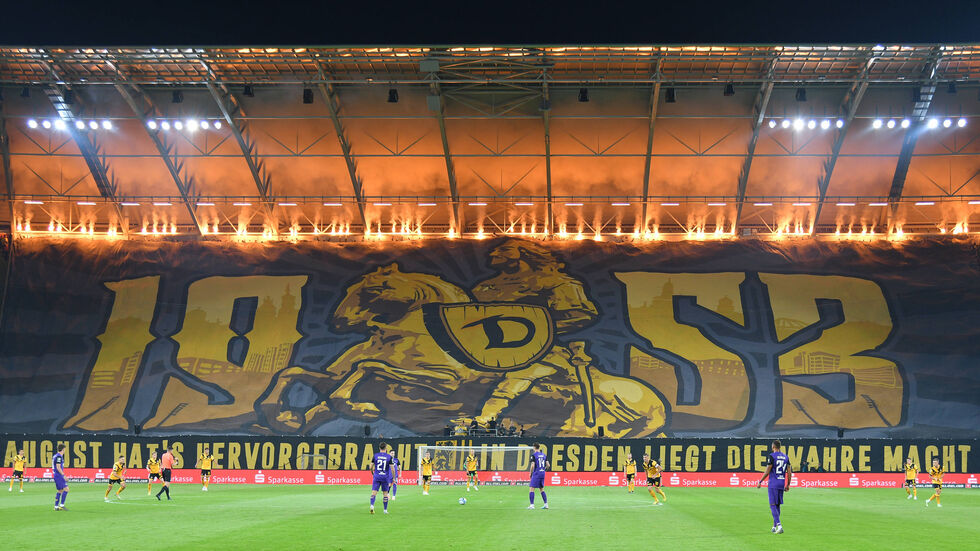 Dynamo Dresden hat mit einem Sieg im Sachsen-Derby gegen Erzgebirge Aue die Tabellenführung in der 3. Fußball-Liga ausgebaut. Der Fußball-Drittligist aus Dresden besiegte die Gäste aus dem Erzgebirge mit 2:1 (1:0). Aue lag früh nach einem Eigentor von Niko Vukancic in der neunten Minute im Rückstand. Dresdens Dennis Borkowski (85.) erhöhte vor 31 834 Zuschauern im ausverkauften Rudolf-Harbig-Stadion, ehe Marcel Bär (90.+3) den Anschlusstreffer erzielte. Dynamo musste ab der 88. Minute auf Tom Berger nach Gelb-Roter Karte verzichten.