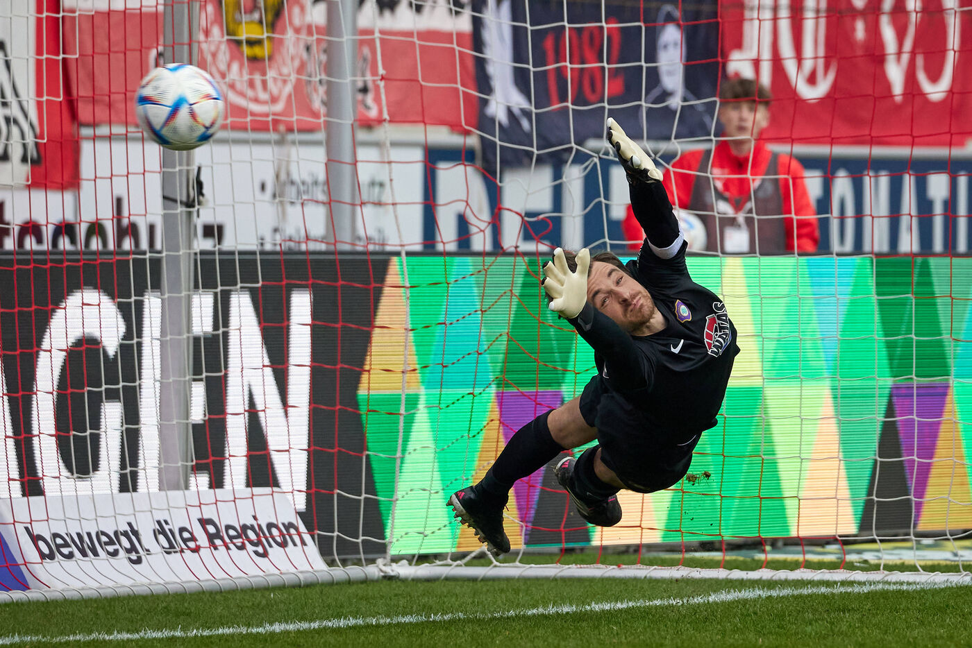 Durch den ersten Heimsieg seit November verließ der HFC vorübergehend die Abstiegsränge, Aue rangiert weiter im Mittelfeld (mit dpa).