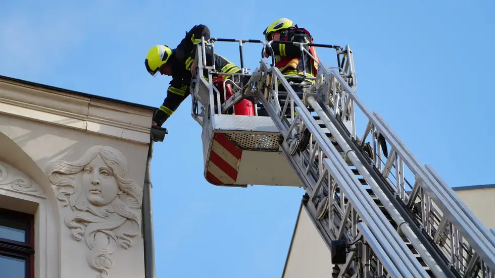 Es sah gefährlich aus - stellte sich dann aber als kleiner dar: In Leipzig Kleinzschocher hat ein Schwelbrand in einer Dachrinne für einen großen Feuerwehr-Einsatz gesorgt. Die Kameraden rückten mit insgesamt drei Drehleitern an. Benötigt wurde nur eine. Um den Brand zu löschen genügte ein sogenanntes Kleinlöschgerät. Verletzte gab es keine.