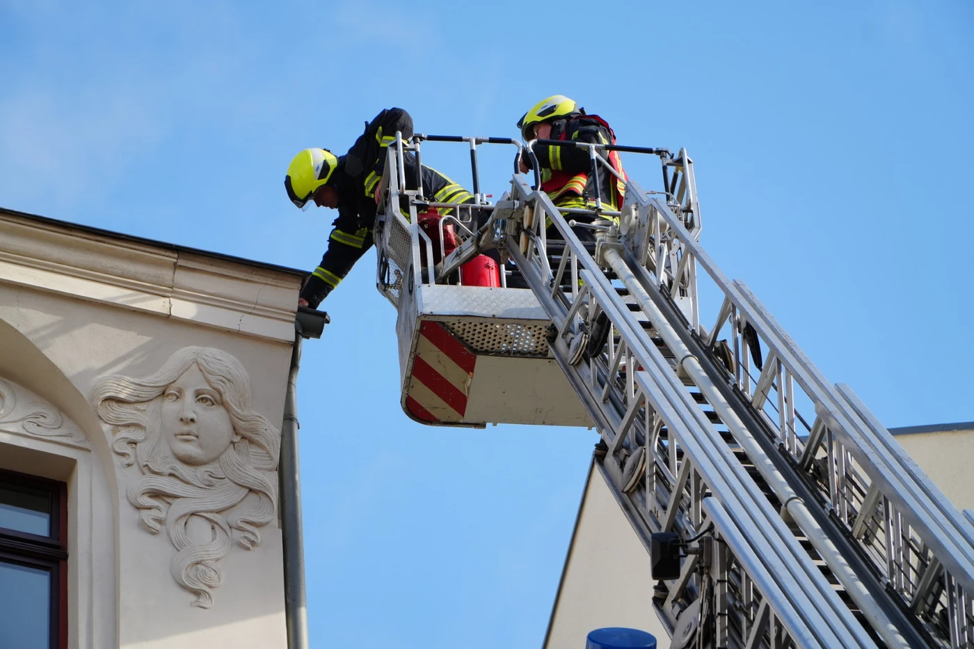 Es sah gefährlich aus - stellte sich dann aber als kleiner dar: In Leipzig Kleinzschocher hat ein Schwelbrand in einer Dachrinne für einen großen Feuerwehr-Einsatz gesorgt. Die Kameraden rückten mit insgesamt drei Drehleitern an. Benötigt wurde nur eine. Um den Brand zu löschen genügte ein sogenanntes Kleinlöschgerät. Verletzte gab es keine.