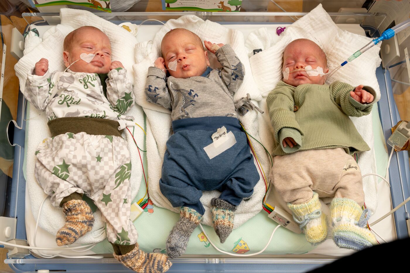 Ein Team aus knapp 20 Personen hatte die Geburt Anfang November begleitet. Der erste Drilling, Levi, kam mit einem Geburtsgewicht von 1.140 Gramm zur Welt, Bernie wog 980 Gramm und Hardy 1.210 Gramm.