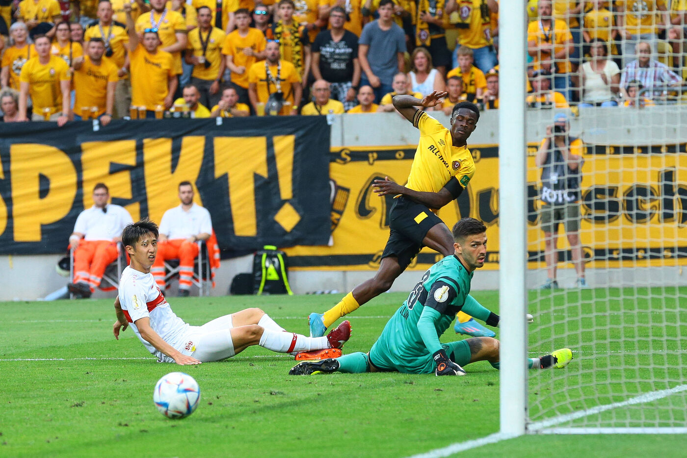 Das erhoffte Pokalwunder ist ausgeblieben. Dynamo Dresden hat den Schlagabtausch gegen den favorisierten Bundesligisten VfB Stuttgart mit 0:1 (0:1) verloren. Darko Churlinov hatte die Schwaben in der 33. Minuten in Führung gebracht. Nach einer Gelb-Roten Karten für Waldemar Anton (67.) musste der VfB die Partie in Unterzahl beenden. Vor 22 644 Zuschauern im Rudolf-Harbig-Stadion warfen die Dresdner in der Schlussphase alles nach vorn, verpassten den Ausgleichstreffer aber aufgrund von zu vielen Unzulänglichkeiten.