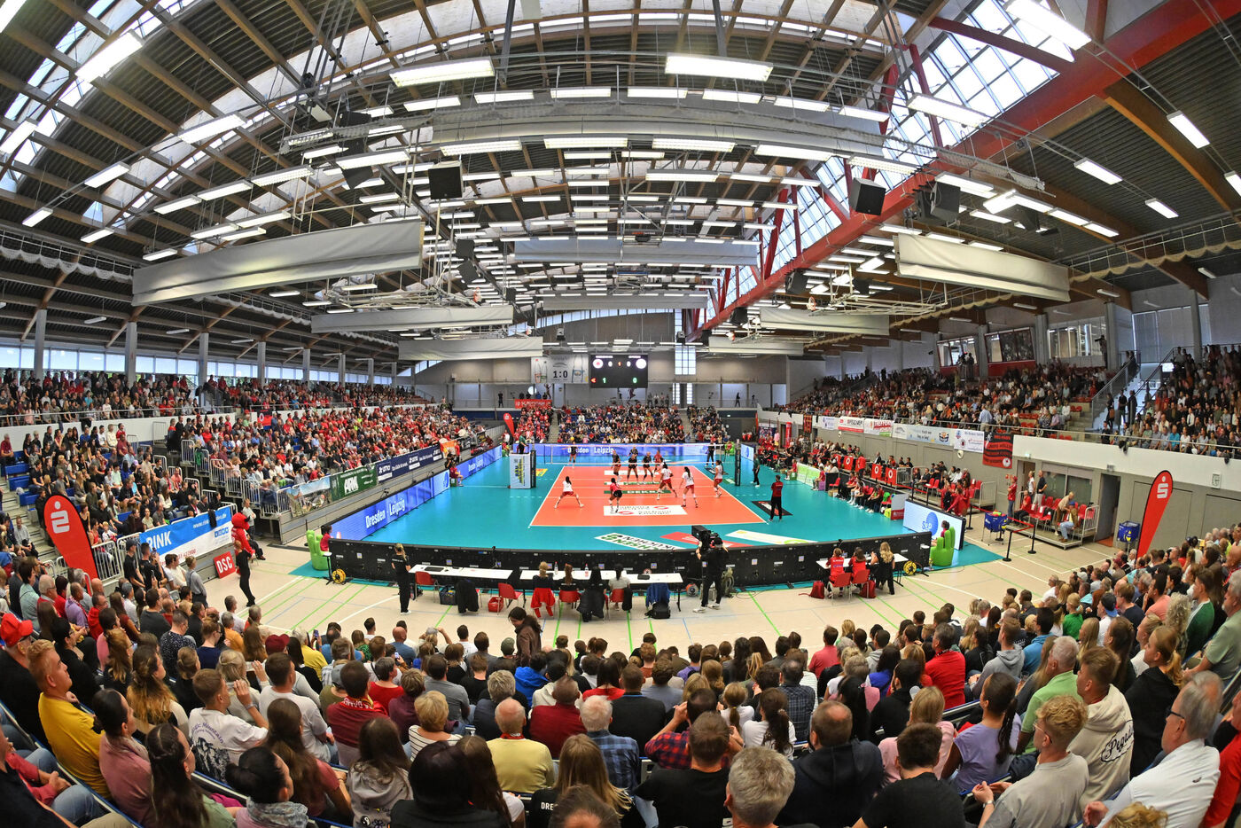 Die Dresdnerinnen starteten vor 2908 Zuschauern konzentriert in die Partie, lieferten sich mit den Gästen von Beginn an einen offenen Schlagabtausch. Dabei konnte Dresden immer wieder die langen Ballwechsel für sich entscheiden. Suhl kämpfte sich nach der ersten technischen Auszeit heran, vor allem Diagonalangreiferin Marie Hänle (32 Punkte insgesamt) überwand mehrfach den gegnerischen Block. Doch der DSC blieb die Antwort nicht schuldig, punktete aus stabiler Annahme sehr variabel und auch die Block- und Feldabwehr stand sicher.