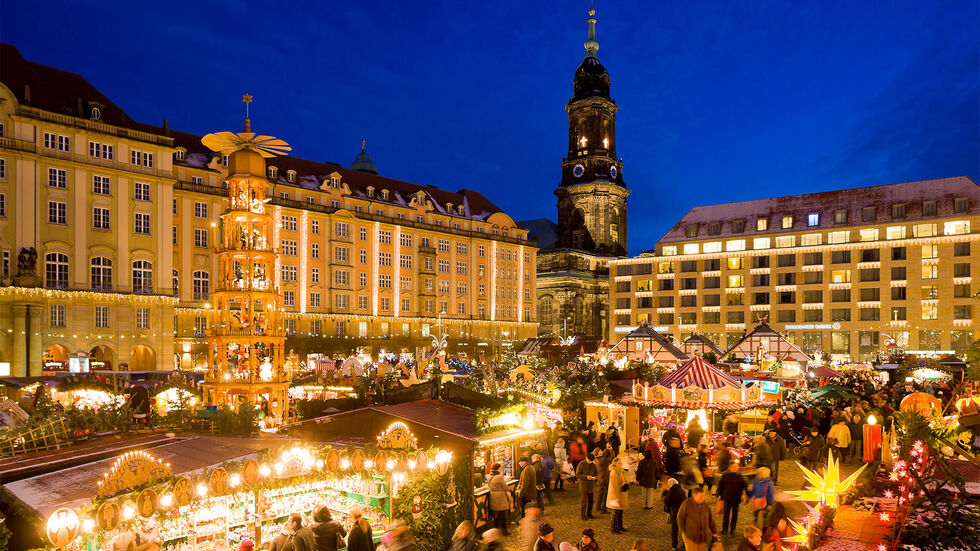 In Dresden gibt es neun Weihnachtsmärkte. Besuchermagnet ist der berühmte Striezelmarkt, der vom 26. November bis 24. Dezember auf dem Altmarkt stattfindet. Rund zwei Millionen Gäste besuchten Deutschlands ältesten Weihnachtsmarkt im vergangenen Jahr. Über 200 Händler boten ihre Waren an. (dpa)