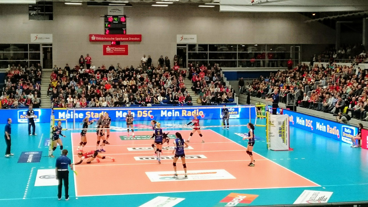 Die DSC-Volleyballerinnen verabschieden sich mit einem Sieg ins neue Jahr. Zum Abschluss eines grandiosen 2016 gewann das Team von Trainer Alexander Waibl am Mittwochabend mit 3:1 (25:21, 25:19, 21:25, 26:24) gegen den SC Potsdam. Vor 3.000 Zuschauern verteidigten die Dresdnerinnen damit auch den dritten Tabellenplatz.Nach dem Spiel bestätigte Waibl auch zwei Neuzugänge. Die US-Zwillinge Kadie und Amber Rolfzen werden zum DSC stoßen. Beide sind am Mittwoch in Dresden gelandet, spielten zuletzt für das College-Team Nebraska Huskers.