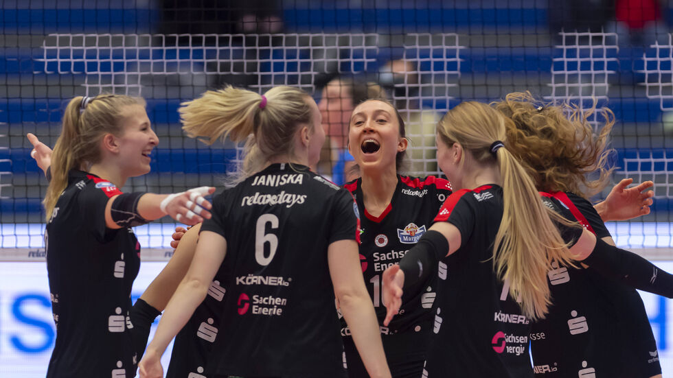 Gegen das zum Teil ersatzgeschwächte Gastgeberteam starteten die Dresdnerinnen etwas verhalten. Doch im zweiten Durchgang erhöhten sie den Druck im Aufschlag und Angriff, standen stabiler in der Block- und Feldabwehr und lieferten dem Favoriten einen Schlagabtausch auf Augenhöhe. In der entscheidenden Schlussphase brachte eine Aufschlagserie von Madeleine Gates den Satzausgleich.