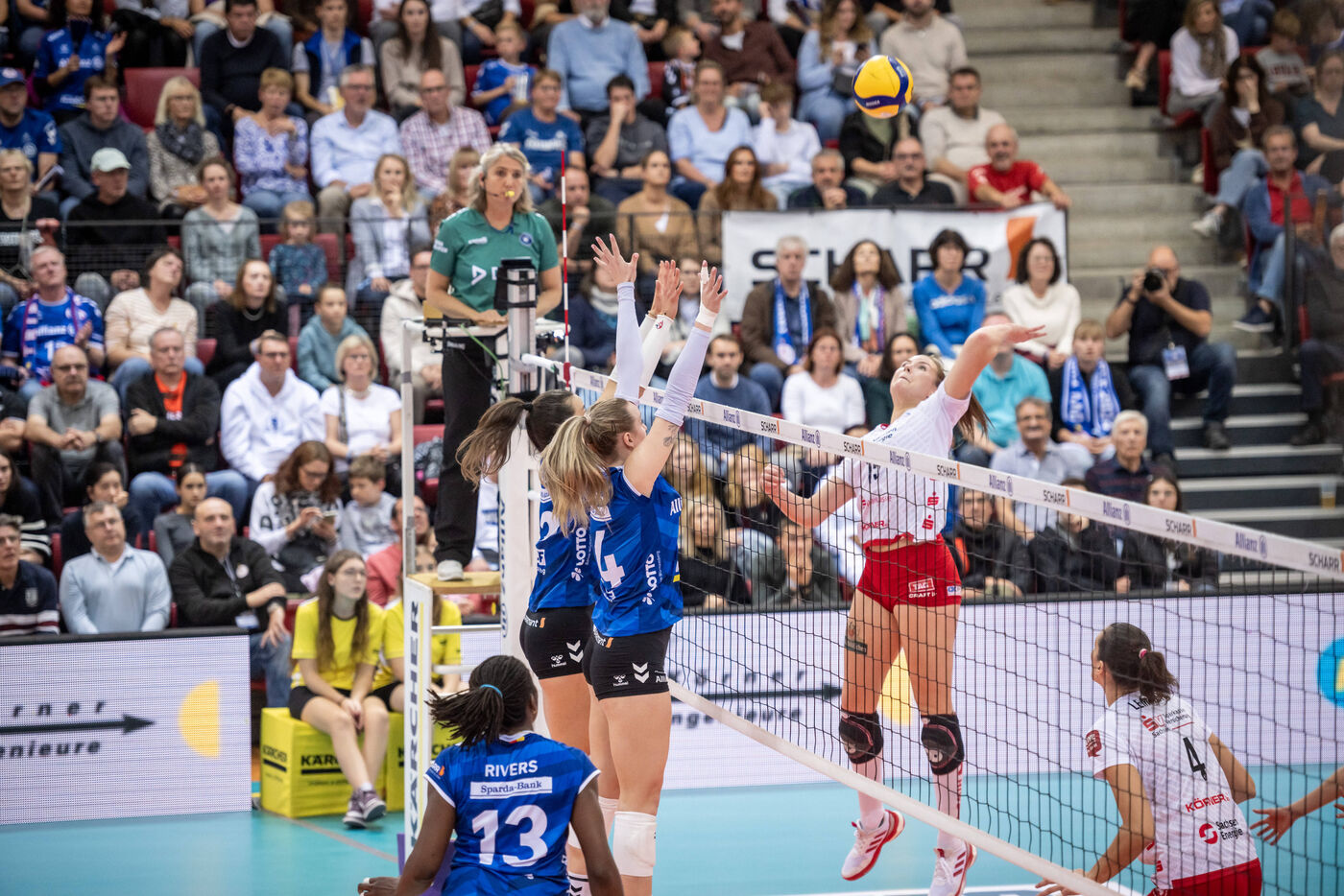 Beide Teams lieferten sich von Beginn an einen harten Schlagabtausch mit zahlreichen langen Ballwechseln auf Augenhöhe. Im ersten Satz arbeiteten die Gäste vor 2.251 Zuschauern und damit ausverkaufter Arena druckvoll im Aufschlag, effektiver im Angriff. Im zweiten Abschnitt lagen die Dresdnerinnen ebenfalls schon mit 14:11 in Front, doch mit einem Doppelwechsel auf Stuttgarter Seite drehten die MTV-Damen auf und schafften den Satzausgleich. Im dritten Abschnitt knüpfte der Meister daran an, während beim Waibl-Team der Spielfaden etwas verloren ging.