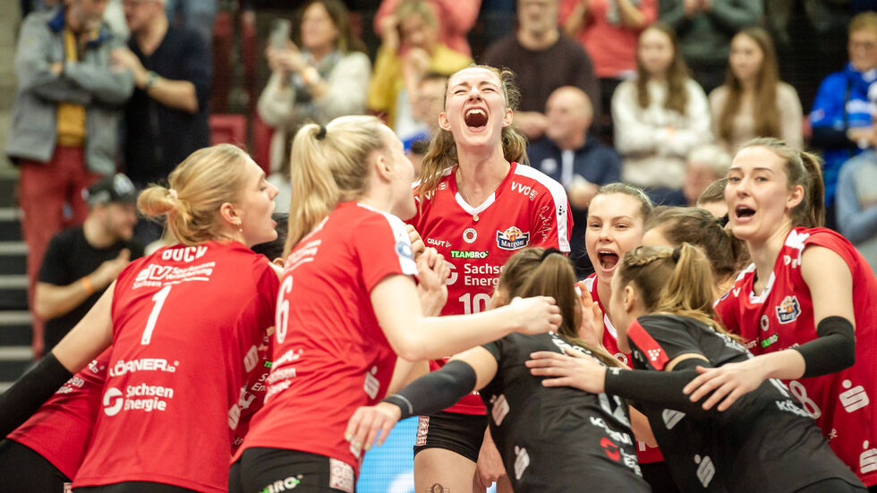 Die Dresdnerinnen, die weiter auf Stammzuspielerin Sarah Straube (Kreuzbandriss) verzichten müssen, starteten sehr konzentriert. Sie lieferten sich von Beginn an einen engen Schlagabtausch mit den Hessinnen, die in der Hauptrunde Platz vier erreicht hatten. In allen drei Sätzen erzeugte der DSC viel Druck mit den Aufschlägen, konnte aus stabiler Annahme sehr variabel angreifen. Besonders in den engen Schlussphasen hatten die Elbestädterinnen deutliche Vorteile in der Blockabwehr, leisteten sich weniger Fehler und fanden auch immer wieder gute Lösungen im Angriff. Nach 101 Minuten verwandelte Agnes Pallag, die auch zur MVP gewählt wurde, den zweiten Matchball zum Sieg (mit dpa).