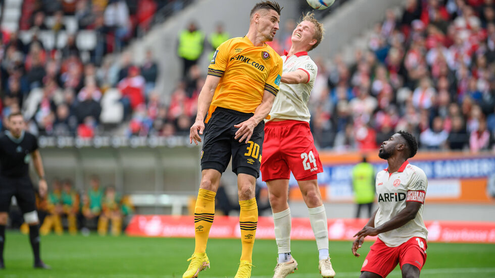 „Wir haben uns schwergetan. Mit dieser Leistung können wir nicht zufrieden sein“, hatte Manager Ralf Becker bei Magenta TV in der Halbzeitpause gesagt. Doch auch im zweiten Abschnitt wurde es nicht gleich nachhaltig besser. Zunächst parierte Drljaca (47.) diesmal stark gegen Young. Nach einem Revanchefoul an Jonathan Meier sah Essens Andreas Wiegel (52.) die Rote Karte. In Überzahl drängte Dynamo auf den Ausgleich. Tim Knipping (78.) und Dennis Borkowski (80.) scheiterten an Rot-Weiss-Schlussmann Jakob Golz. Schäffler aber drückte den Ball wenig später über die Linie. (mit dpa)