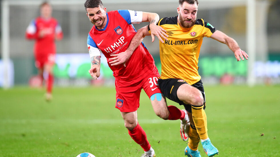 Um die Offensive zu beleben, brachte Schmidt mit Brandon Borrello zu Beginn des zweiten Abschnitts bereits den dritten frischen Akteur. „Da haben wir dann den Kampf angenommen und die Fans haben uns gepusht“, sagte Kade. Dynamo kam tatsächlich besser aus der Pause als die Heidenheimer. Es passte jedoch zur aktuellen Situation der Dresdner, dass mit Sollbauer ausgerechnet der beste Schwarz-Gelbe das Kopfballduell vor dem 0:1 verlor. Der zu Beginn des zweiten Durchgangs eingewechselte Schimmer setzte sich im Luftkampf durch und nickte souverän zur Führung ein. Nur wenig später entschied Schiedsrichter Franz Bokop nach einem Hinweis aus dem Kölner Keller auf Strafstoß für die Hausherren. Heidenheims Jan Schöppner hatte seinen Arm im Luftzweikampf im Gesicht von Julius Kade. Daferner schoss den Ball humorlos ins linke obere Toreck. Es war bereits das zehnte Saisontor des 24-Jährigen.