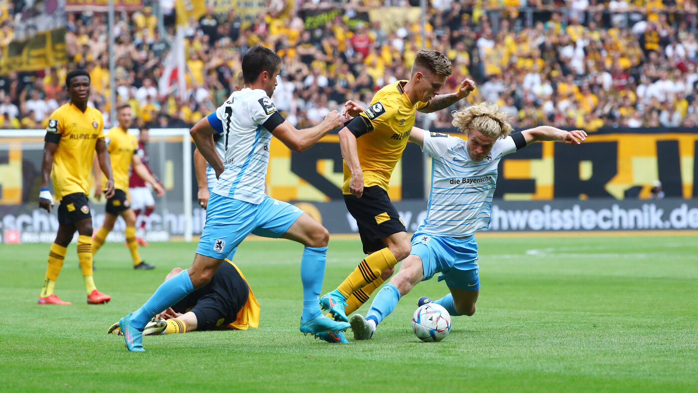 Fehlstart für Dynamo in der neuen Drittligasaison. Trainer Markus Anfang hat mit dem Zweitliga-Absteiger eine unglückliche Drittliga-Premiere erlebt. Die Schwarz-Gelben verloren am Samstag ihr Auftaktspiel gegen den selbst erklärten Aufstiegsfavoriten TSV 1860 München mit 3:4 (0:2). Vor 24 046 Zuschauern im Dresdner Rudolf-Harbig-Stadion brachte Dynamos Kevin Ehlers mit einem Eigentor (8. Minute) die Löwen in Führung, ehe Tim Rieder (36.) erhöhte. Nach dem Treffer von Marcel Bär (68.) konnte Dynamo praktisch im Gegenzug durch Dennis Borkowski (69.) verkürzen, doch Bär (71.) traf erneut für die Sechziger. Danach gelang Dynamo durch Manuel Schäffler (74.) und erneut Borkowski (82.) nur noch Ergebniskosmetik.