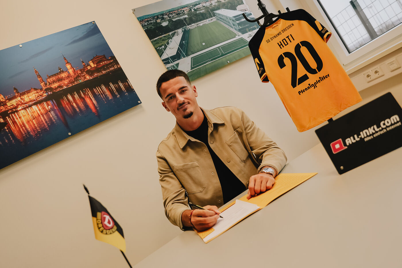 Dynamo hat Innenverteidiger Andi Hoti verpflichtet. Das gab der Verein am Freitagvormittag bekannt. Der 21-Jährige wechselt leihweise bis zum Sommer vom 1. FC Magdeburg zu den Schwarz-Gelben und verstärkt die Defensive bis Saisonende. Hoti kennt Cheftrainer Thomas Stamm bereits aus der gemeinsamen Zeit beim SC Freiburg II in der Saison 2022/23.