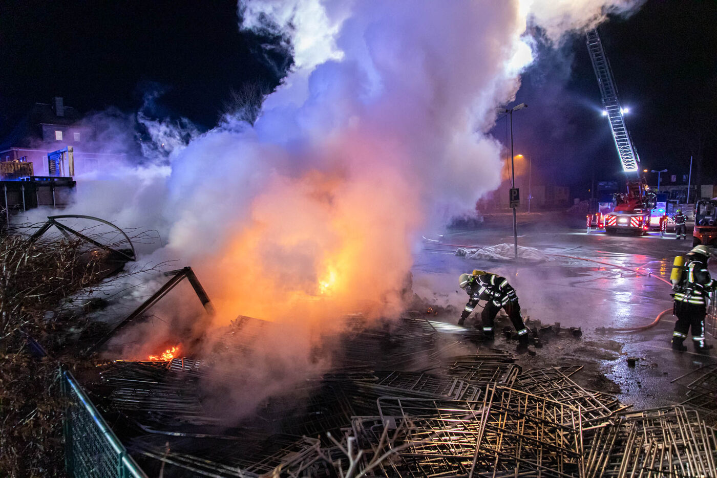 Nach Angaben unseres Reporters vor Ort brach das Feuer gegen 2:15 Uhr aus. Warum, ist noch unklar. Die Flammen drohten auf die Gebäude überzugreifen, das konnte aber verhindert werden. Verletzt wurde niemand. Ein geparkter Transporter und eine Hecke wurden erheblich beschädigt.