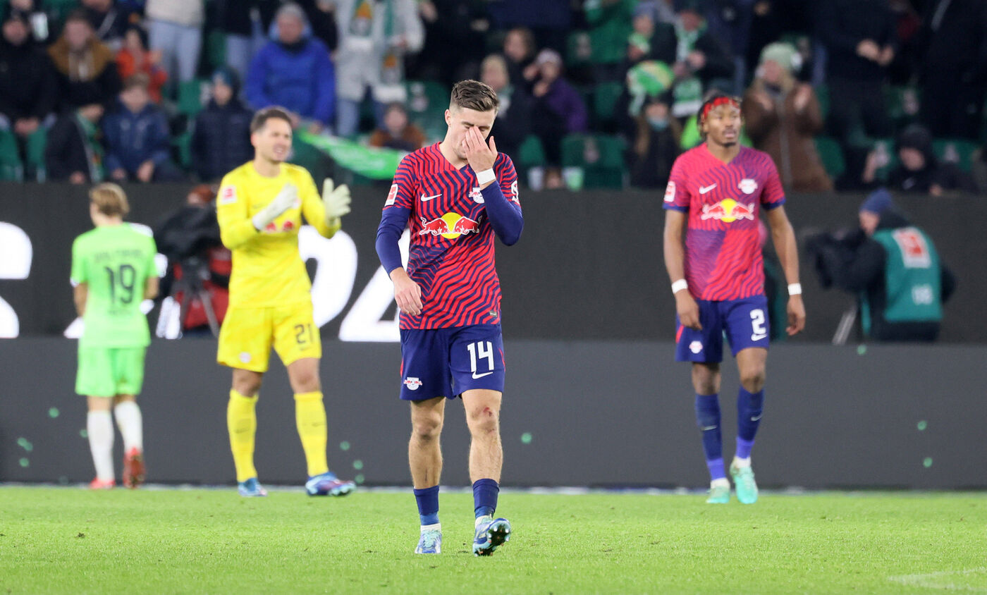 RB Leipzig hat zum zweiten Mal innerhalb von vier Wochen gegen den kriselnden VfL Wolfsburg verloren. 25 Tage nach dem Aus im DFB-Pokal unterlag die Mannschaft von Marco Rose auch am Samstag mit 1:2 (0:1) in der Volkswagen Arena und fiel dadurch in der Fußball-Bundesliga wieder aus den Champions-League-Plätzen heraus.