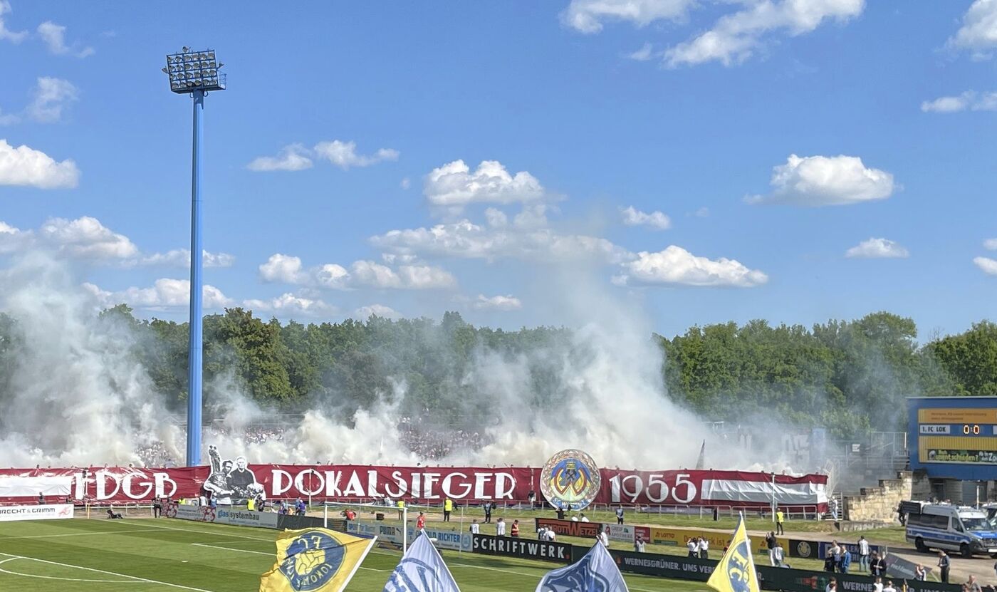 - Die rund 2000 mitgereisten Aue-Fans machten von Beginn an mächtig Dampf.