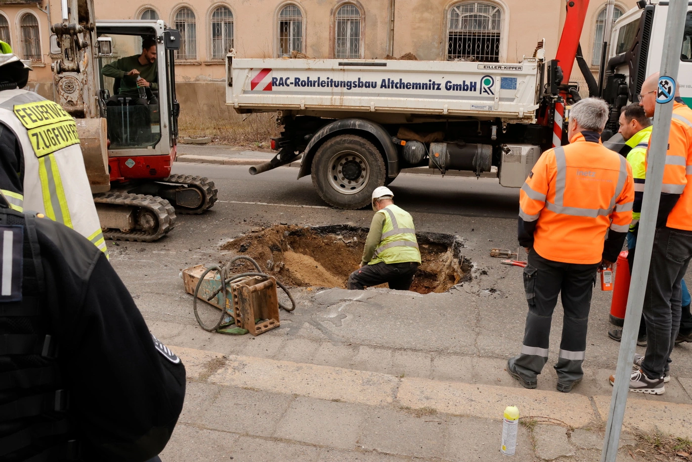 Zur Schadensbeseitigung wurde der stadtauswärtige Fahrstreifen durch die Firma RAC aufgerissen. In Abstimmung mit inetz und Polizei wurde so der Gasanschluss zum Gebäude dauerhaft unterbrochen. Bis die Baugrube wieder verfüllt ist, bleibt die Zwickauer Straße in dem Bereich halbseitig gesperrt.