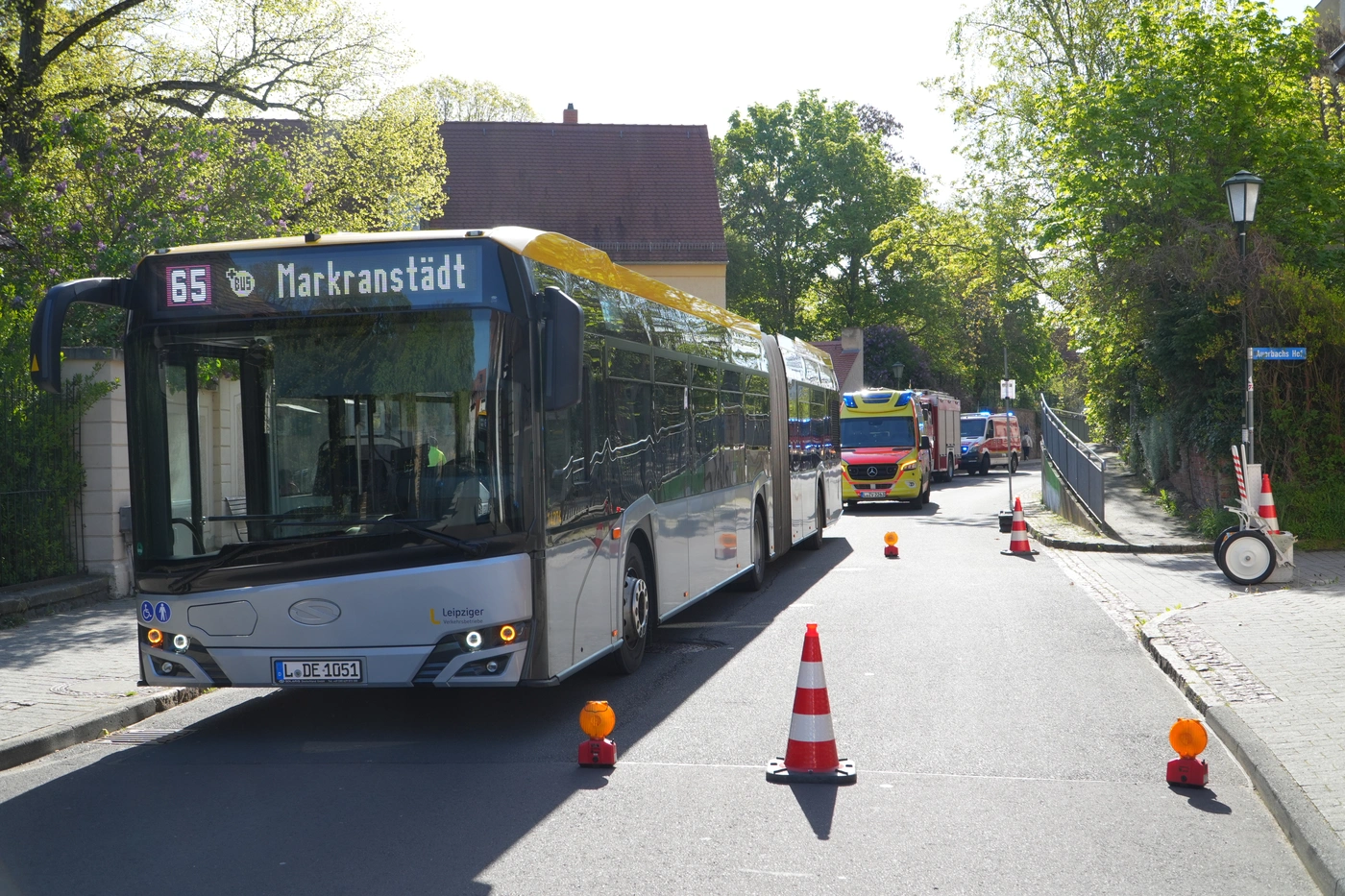 Schwerer Unfall auf der Lauerschen Straße in Markkleeberg: Dort ist eine 41-jährige Fußgängerin am Dienstagmorgen gegen 9 Uhr mit einem Linienbus zusammengeknallt. Laut Polizei stürzte die Frau vom Fußweg aus nach links gegen das Fahrzeug. Ob der Bus stand oder fuhr, sei bisher unklar. Sie wurde schwer verletzt und musste ins Krankenhaus gebracht werden.