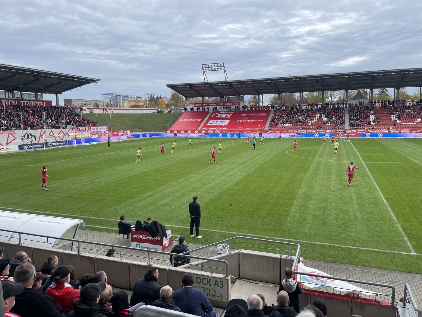 Die Zwickauer wurden mit Applaus in die Halbzeit verabschiedet. Denn sie hatten das Spiel gegen Luckenwalde im Griff und führten nach einem Lehrbuchtor mit 1:0. Nach knapp einer halben Stunde zog Daniel Haubner zentral in Richtung Tor, gab ab auf Veron Dobruna und der ging in den Strafraum, legte sich den Ball zurecht und zirkelte ihn aus etwa zehn Metern in die Maschen.