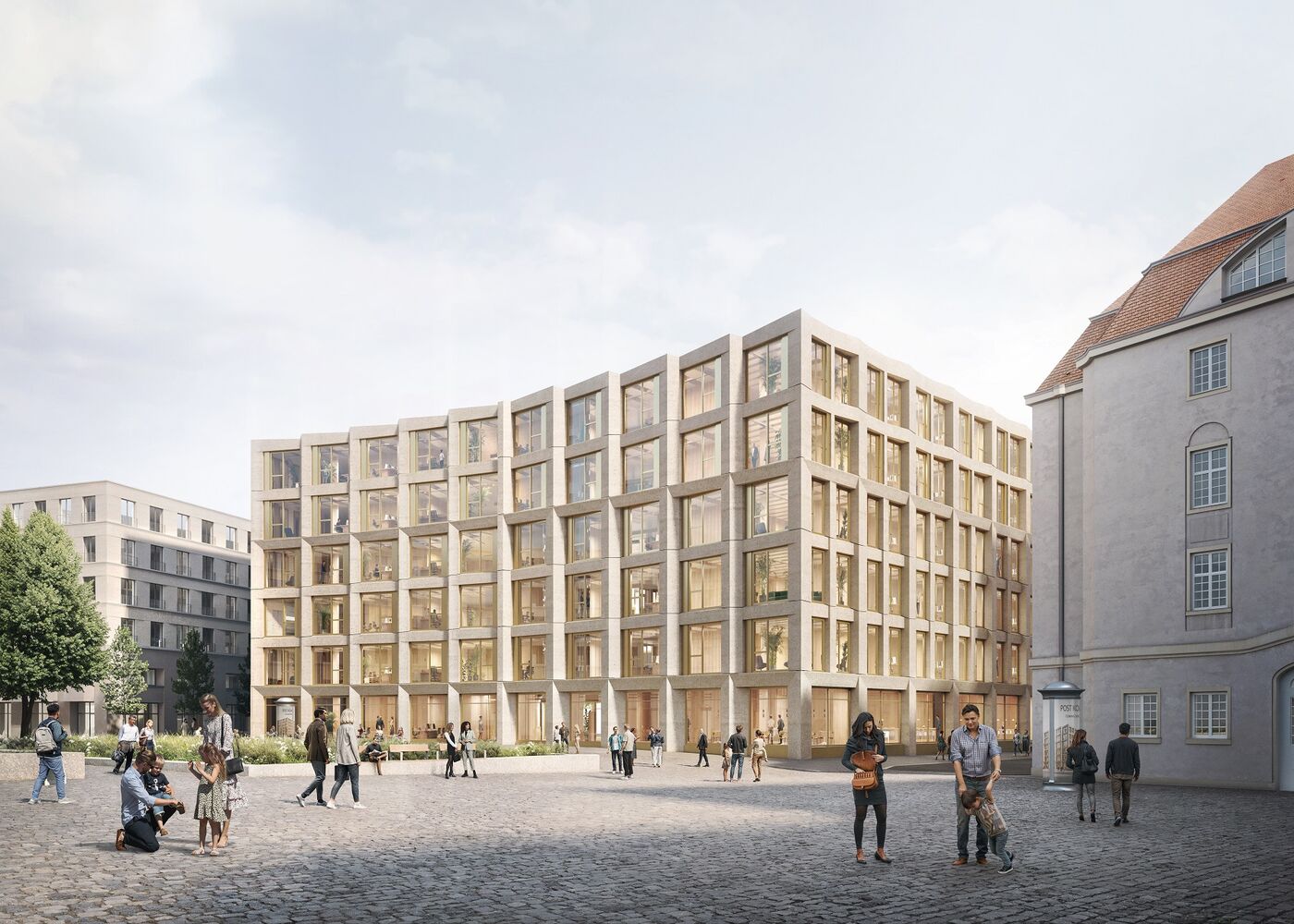 Und auch das sogenannte „Postkontor“ am Zwinger hat die Landeshauptstadt im Portfolio. Das Projekt richtet sich an Dienstleister, Kreativ- und Technologieunternehmen, Start-ups sowie öffentliche Nutzer. Der Entwurf von Henning Larsen berücksichtigt die städtebauliche Einbindung ebenso wie Anforderungen an Nachhaltigkeit und moderne Arbeitsformen. Vorgesehen sind hier Flächen für Einzel- und Großraumbüros oder hybride Konzepte. Diese Fläche ist nicht im Eigentum der Landeshauptstadt. Bauherr ist die CCD Projektentwicklung GmbH & Co. KG.