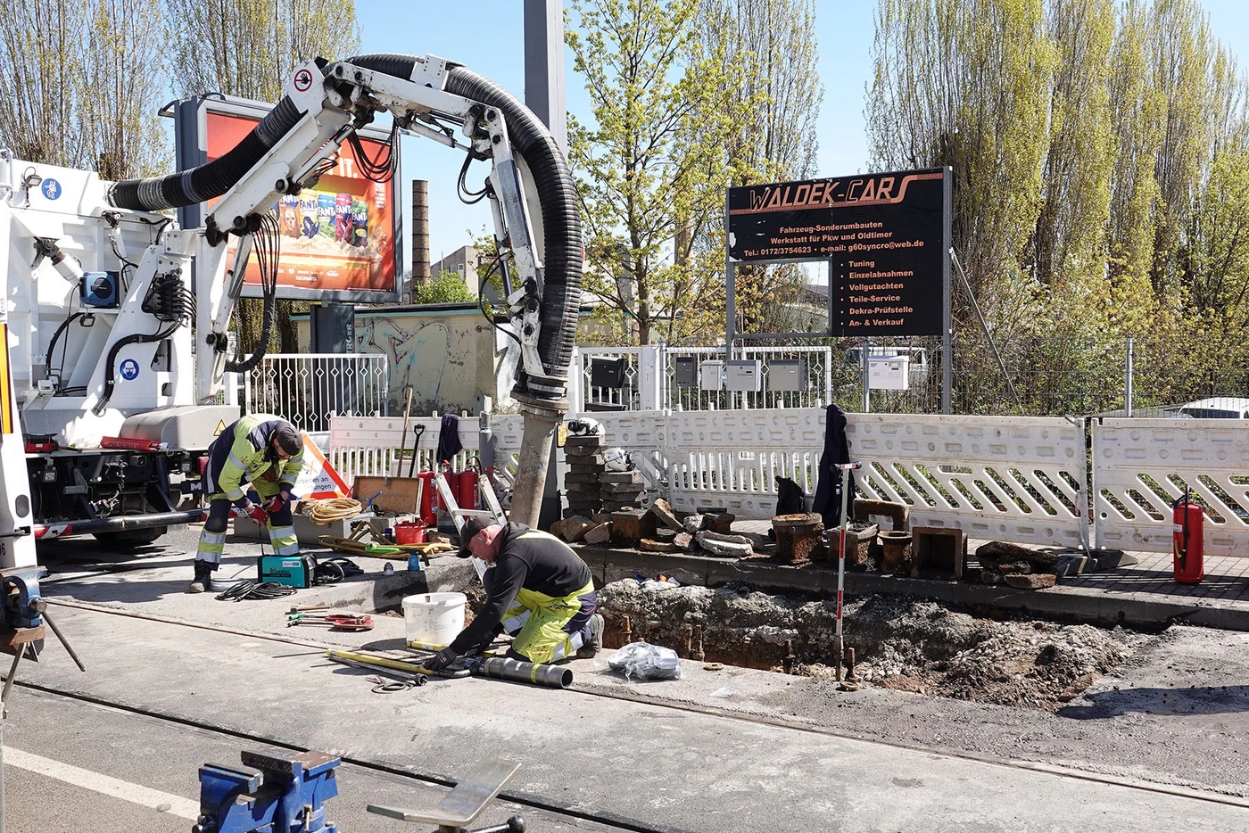 Die Tiefbauarbeiten konnten am Mittwoch nicht beendet werden, so dass die Fahrbahn weiterhin bis voraussichtlich nächste Woche Dienstag gesperrt bleiben muss. Am Donnerstag, 16.4., müssen auch die Straßenbahnlinien 9 und 13 erneut zwischen 8 und 15 Uhr eingeschränkt werden.