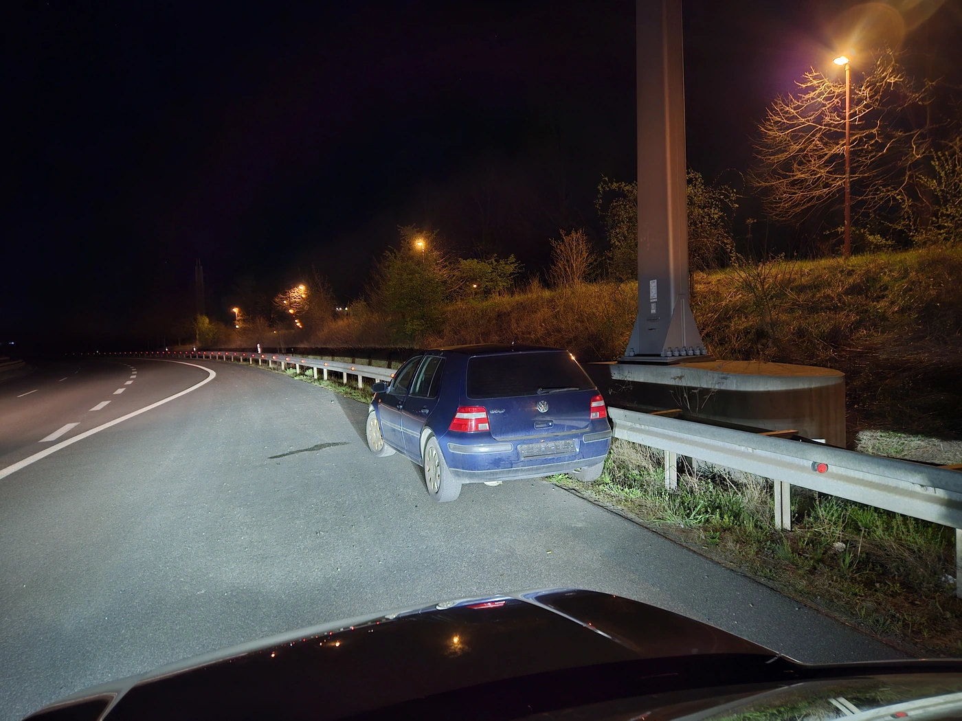 Kurioser Fund auf der Maximilianallee: Unbekannte haben dort einfach so ein Auto abgestellt - am Straßenrand direkt an der Leitplanke. Stadtauswärts - unbeleuchtet und ohne Kennzeichen.