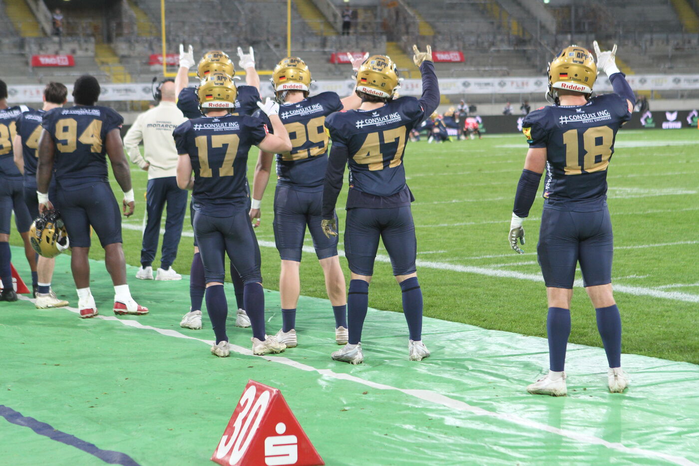 Greg Seamon, Headcoach Dresden-Monarchs: „Ein sehr spannendes, enges und faires Spiel – wir sind stolz, Teil dieses großartigen Finales vor dieser unglaublichen Kulisse gewesen zu sein.“