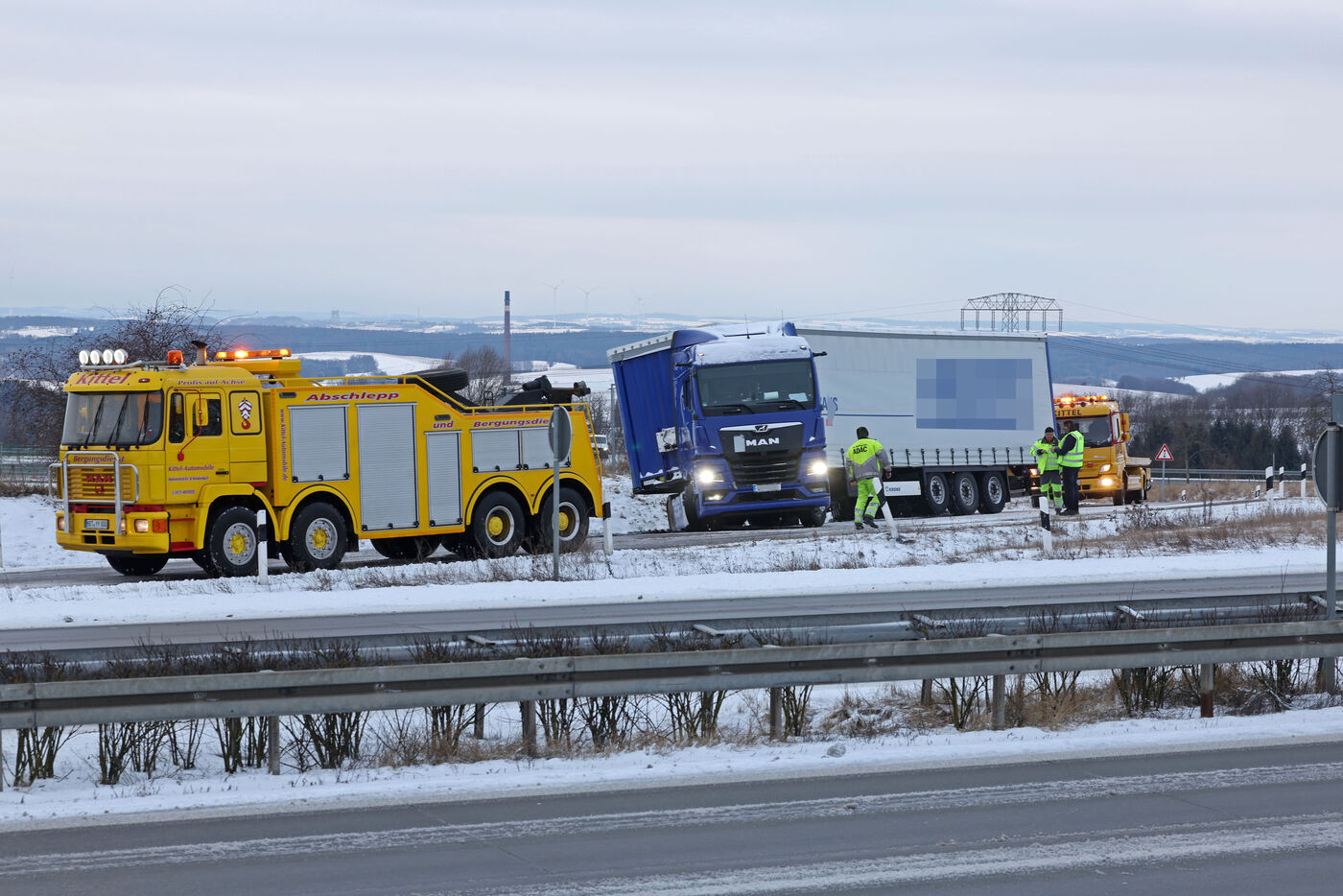 Glätte: Lkw stellt sich auf A-4-Auffahrt quer