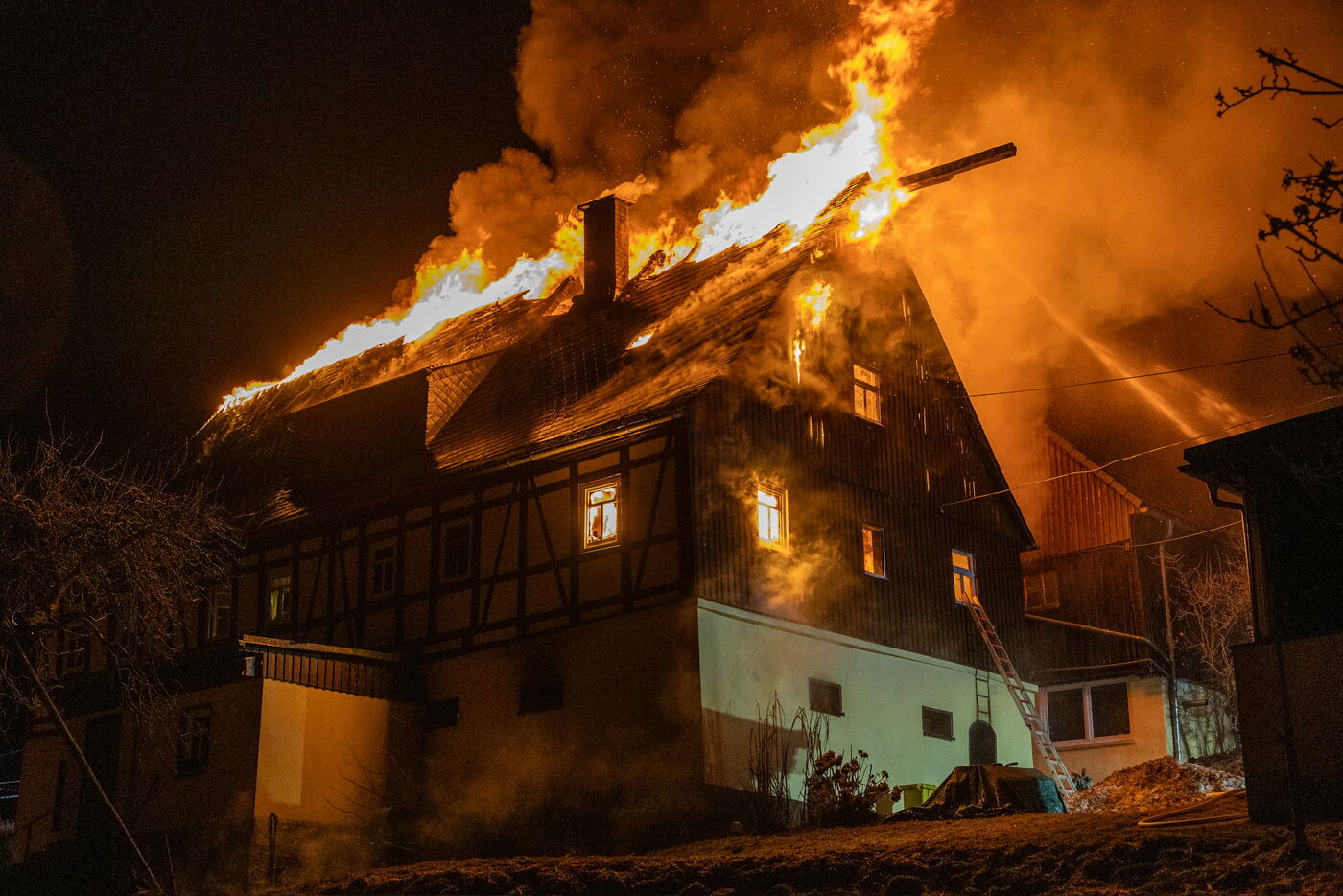 In Waschleithe, einem Ortsteil von Grünhain-Beierfeld, ist am frühen Montagmorgen ein Wohnhaus bis auf die Grundmauern niedergebrannt. Das Feuer war kurz nach Mitternacht in einem Haus an der Hinterdorfer Straße ausgebrochen. Die Flammen hatten sich vom Keller auf das gesamte Gebäude und eine angrenzende Scheune ausgebreitet.